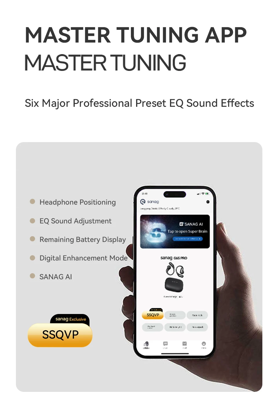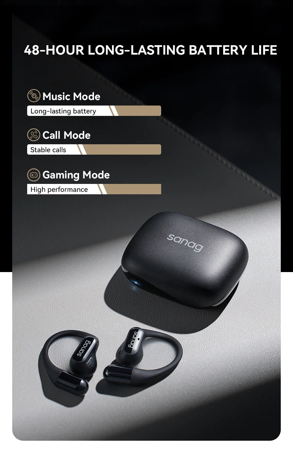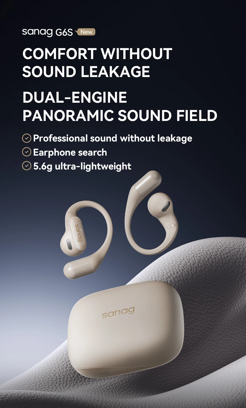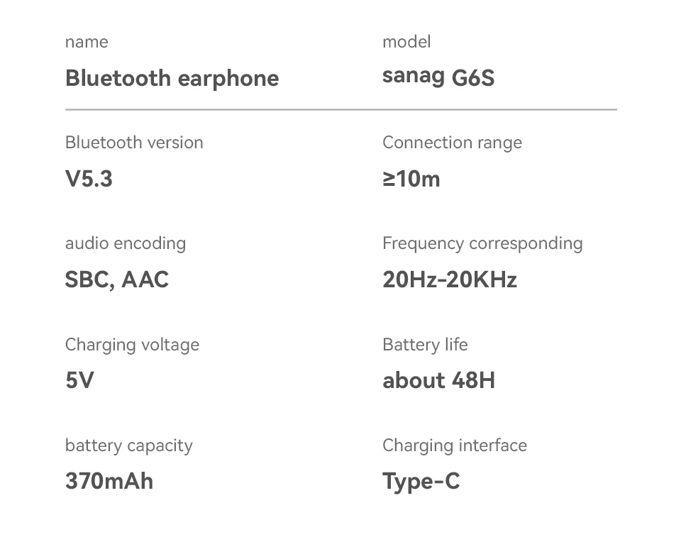 The Sanag G6S Open Ear Bluetooth Earphone features an ergonomic ear hook design, providing a comfortable and secure fit for sports and running. With HiFi sound quality and TWS technology, these wireless headphones are perfect for gaming and everyday use.