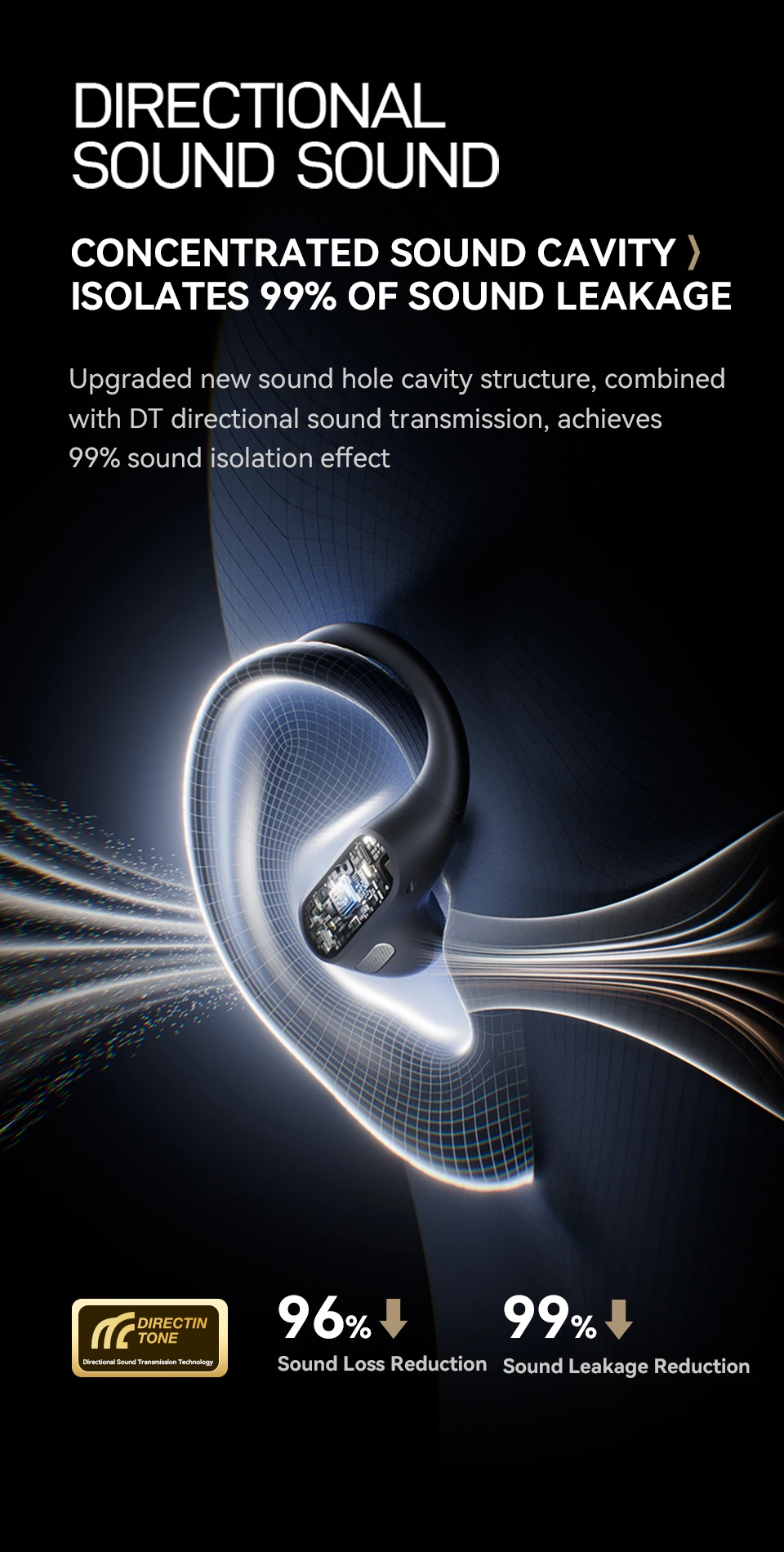 Break the traditional barrier between listening and the environment with an open design that allows ambient sound awareness, enhancing safety