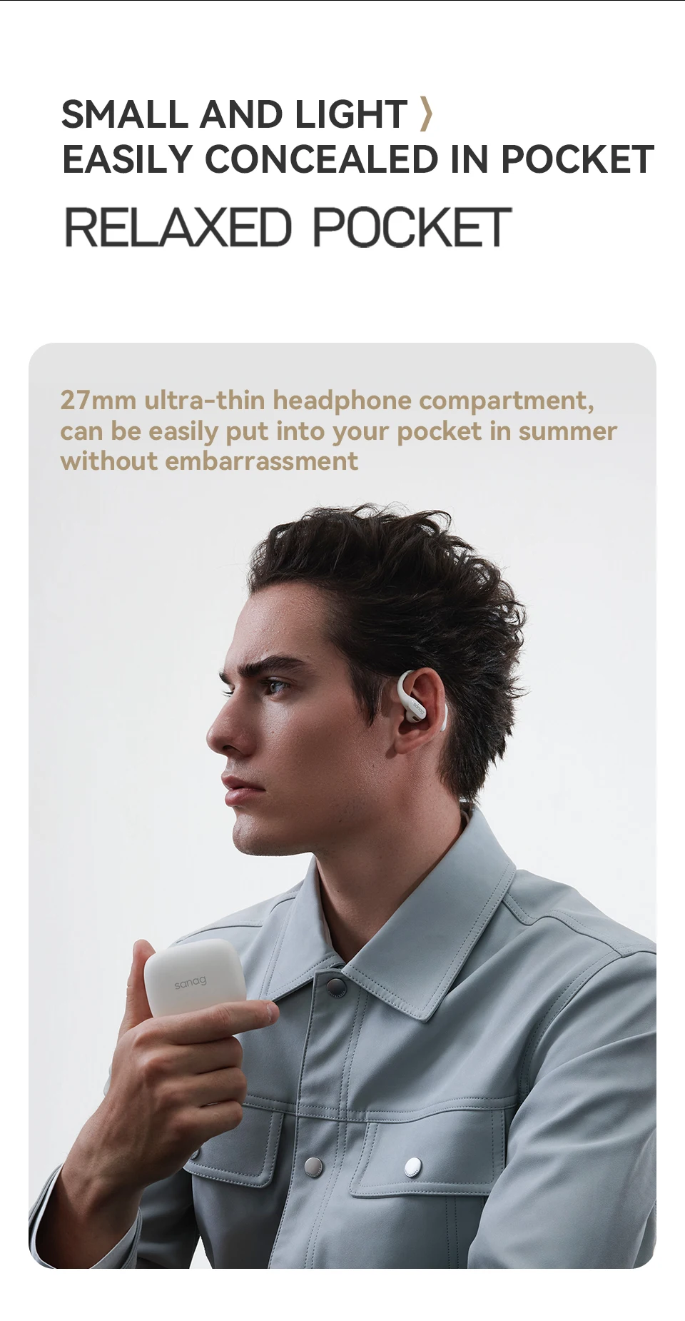 Ultra-thin 27mm earbuds easily fit in your pocket, perfect for summer use