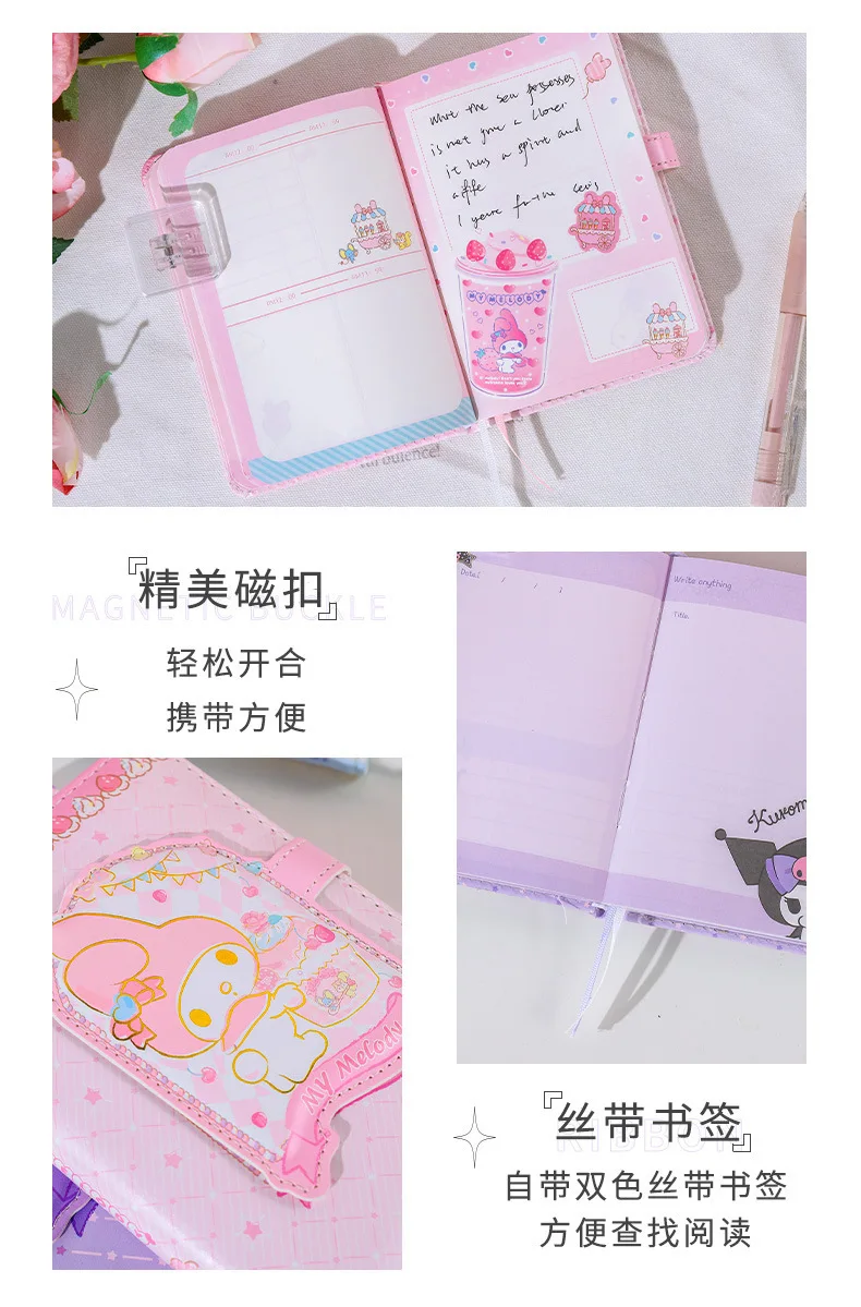 - Character Design: The notebook showcases My Melody, one of Sanrio's most iconic characters. The cover design is vibrant and eye-catching, featuring My Melody in various adorable poses and expressions.