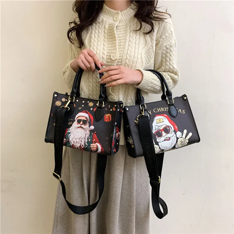 Made with high-quality materials, this tote is both durable and spacious, ensuring that you can carry everything you need while showing off your holiday spirit. The Santa Claus print adds a fun and playful touch to your outfit, making it a great gift or personal treat for the festive season.