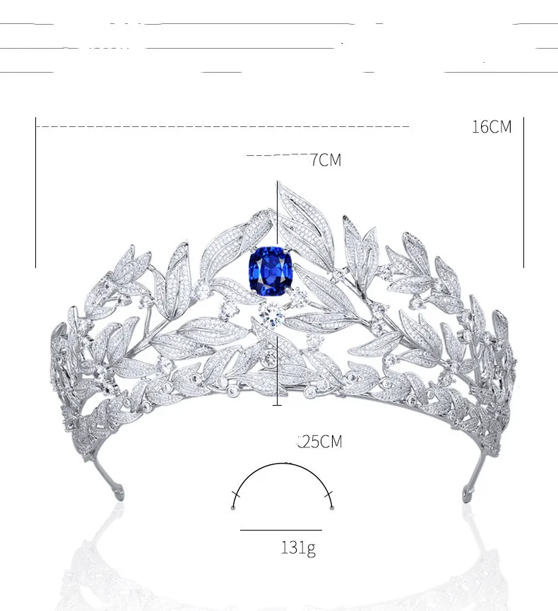 At the heart of this wedding crown is its striking combination of sapphire stones and AAA zircon, carefully micro-inlaid to enhance the crown's brilliance. The AAA zircon stones are known for their superior clarity and sparkle, mimicking the brilliance of diamonds, while the sapphire accents add a deep, regal blue hue, creating a captivating contrast that catches the light beautifully.