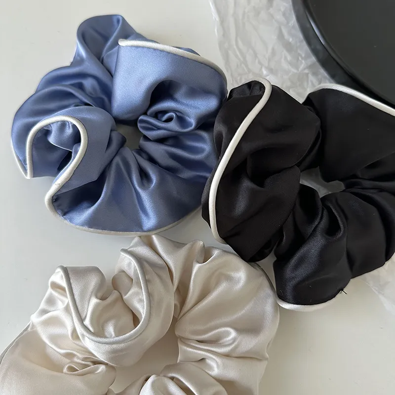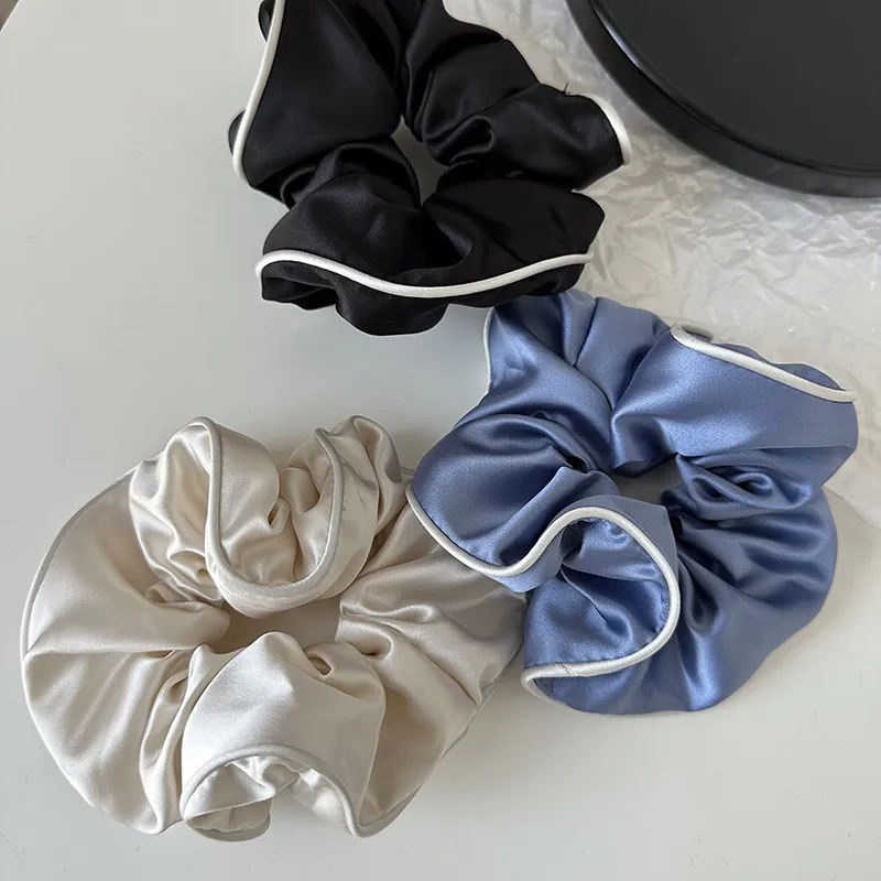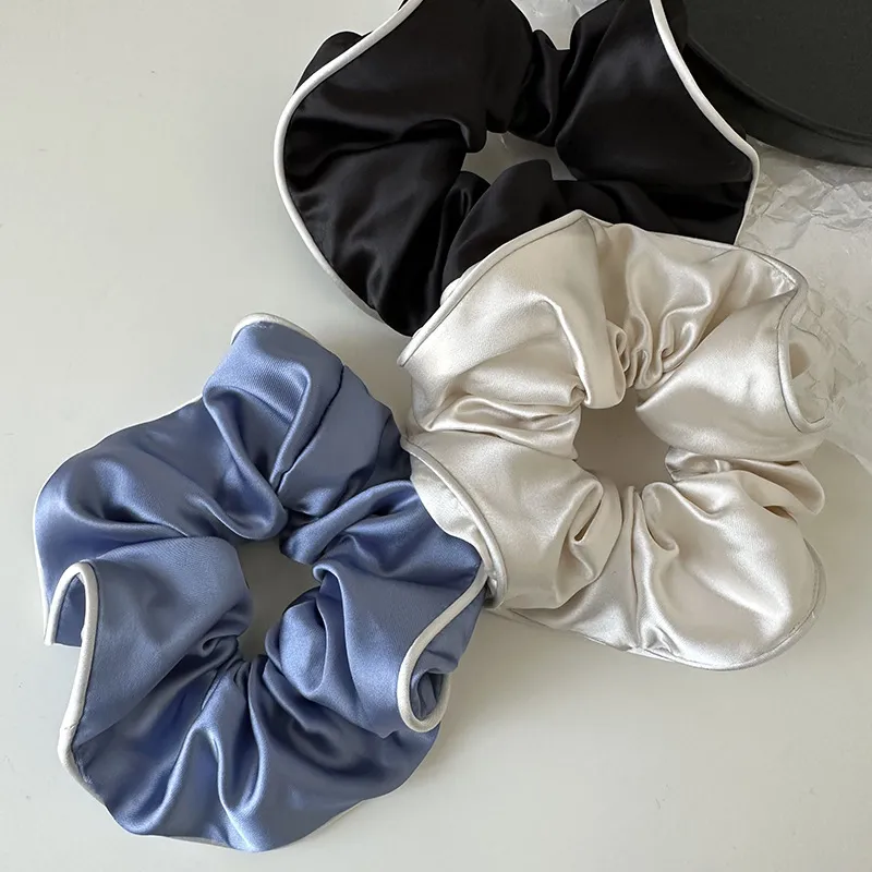 Color: textured satin sausage ring-black, textured satin sausage ring-white, textured satin sausage ring-Blue