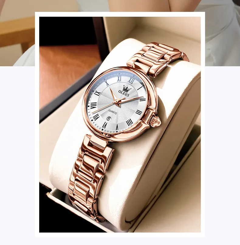 The convenient date display feature keeps you on top of your schedule at a glance, adding a practical touch to its elegant design.