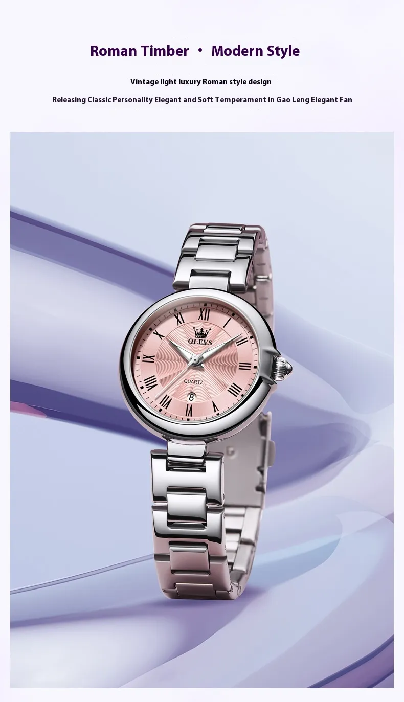The convenient date display feature keeps you on top of your schedule at a glance, adding a practical touch to its elegant design.