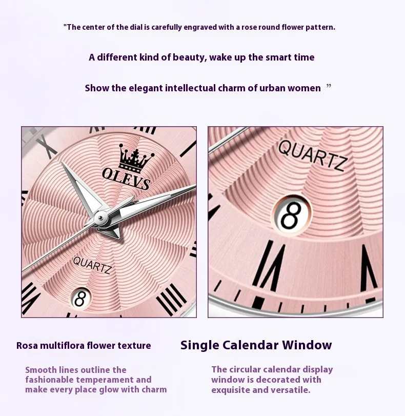 Key Features of the Scale Quartz Luminous Waterproof Sheet Calendar Women’s Watch