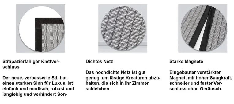 Fliegengittertür in dickerer Ausführung: Die Fliegengitter-Balkontür hat in die Tür eingenähte Magnete, die bei jedem Öffnen und Schließen für ein sehr leises und perfektes Schließen sorgen. Kinder, Katzen und Hunde können problemlos ein- und ausgehen.