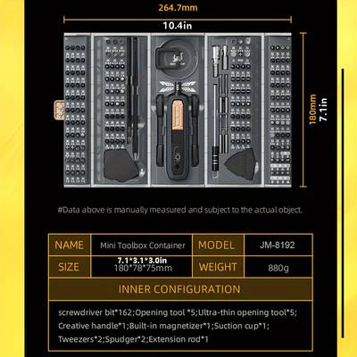 180-Piece Set: Includes a comprehensive selection of precision tools, screwdrivers, and accessories for a wide range of