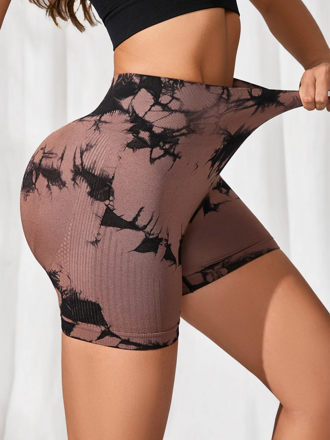 Seamless High Waist High Elastic Tie-Dye Sports Tights – Hip Lifting & Floating Belly Contracting Peach Yoga Pants