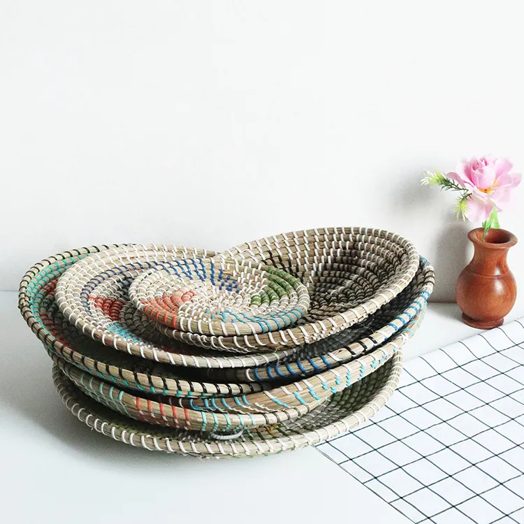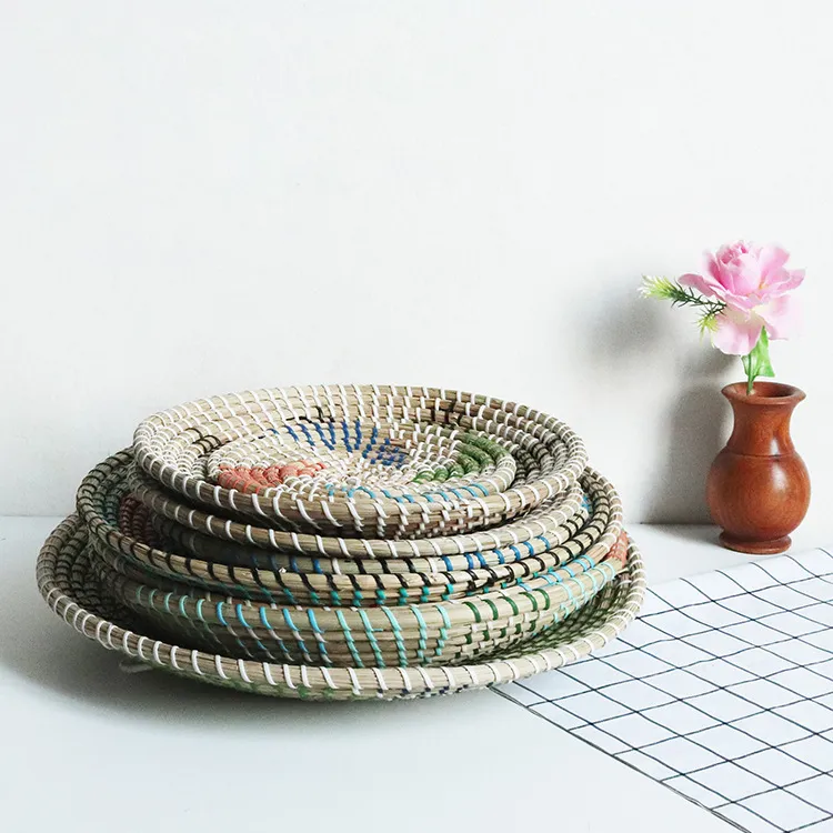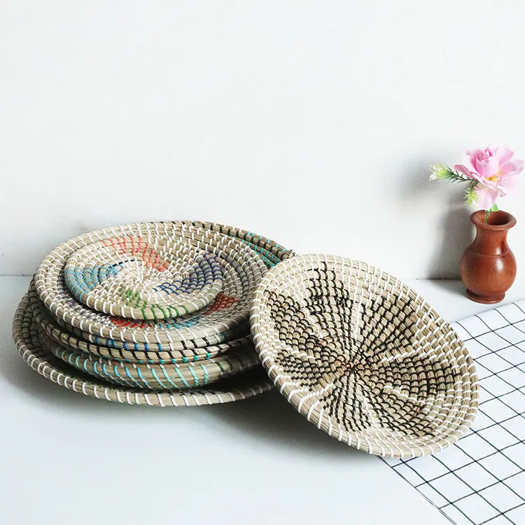 Straw decorative tray x3