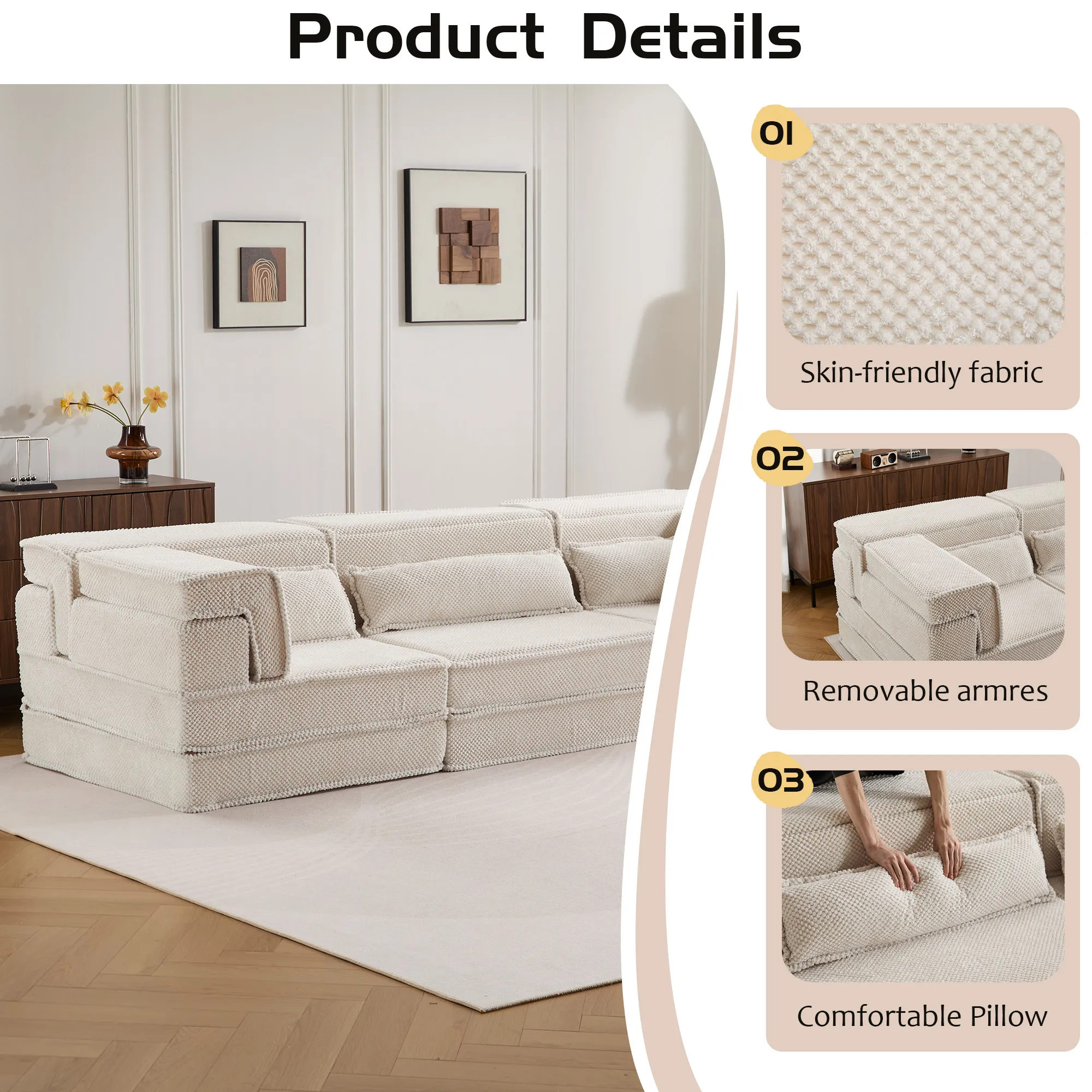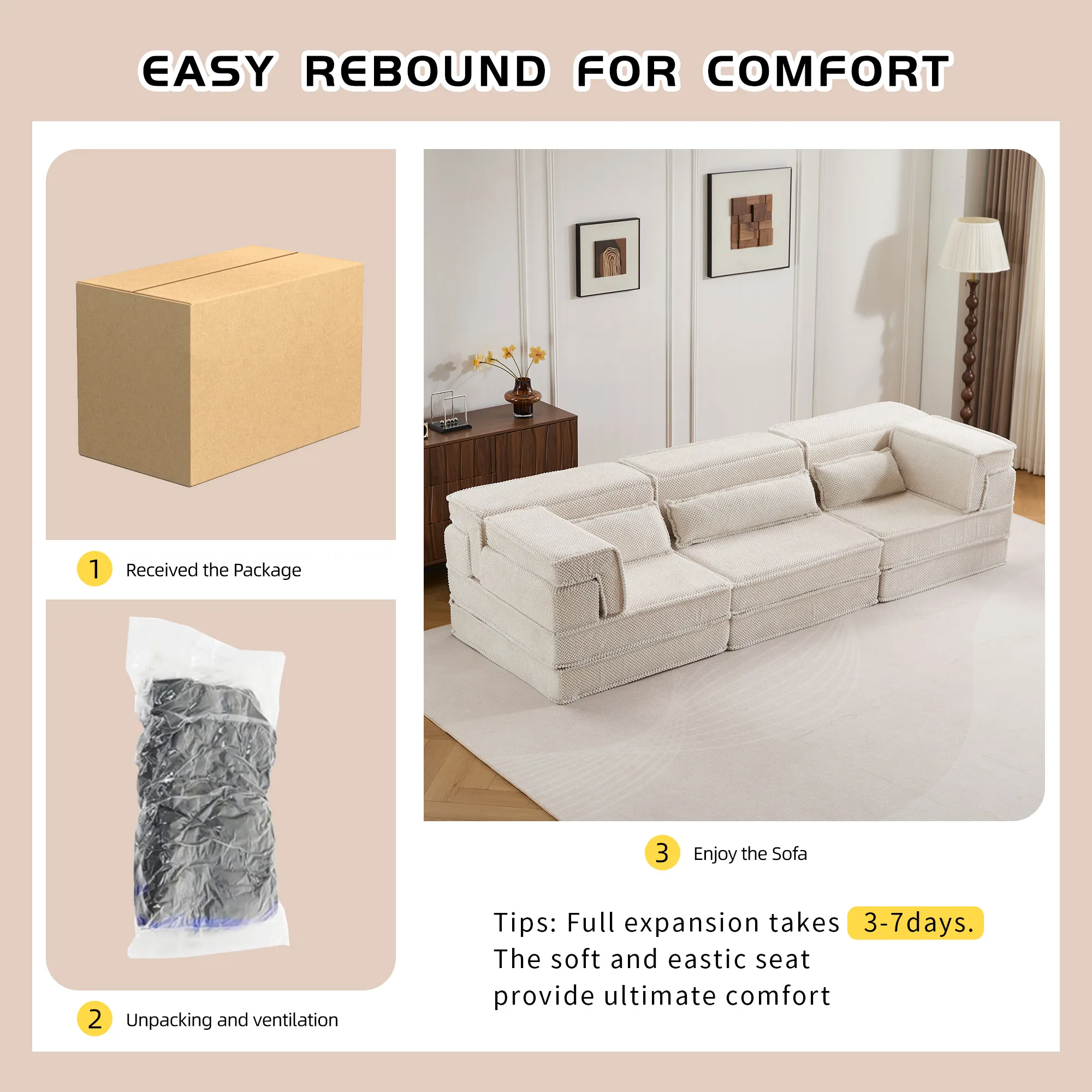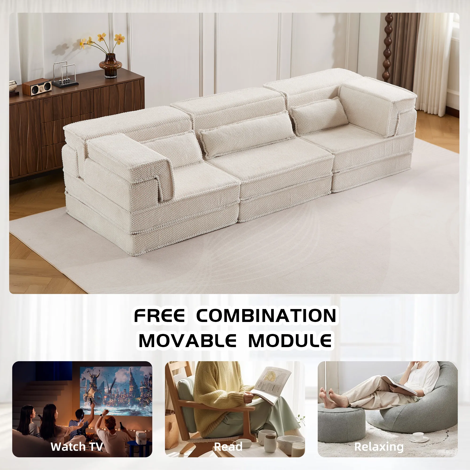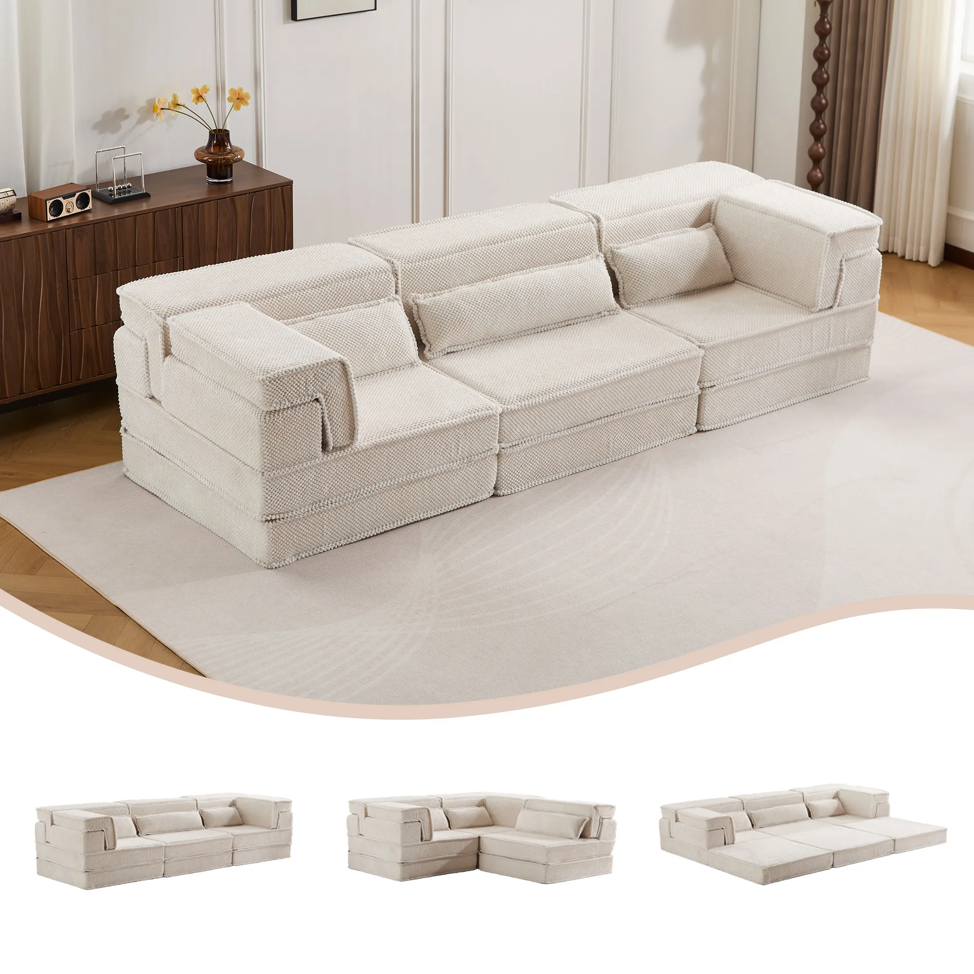 - 【No Assembly Required & Tips】The Convertible Modular Sectional mahjong sofa don't need to assemble. Tips: It takes time for the sofa to expand, Please unpack and wait 48-72 hours for full rebound.