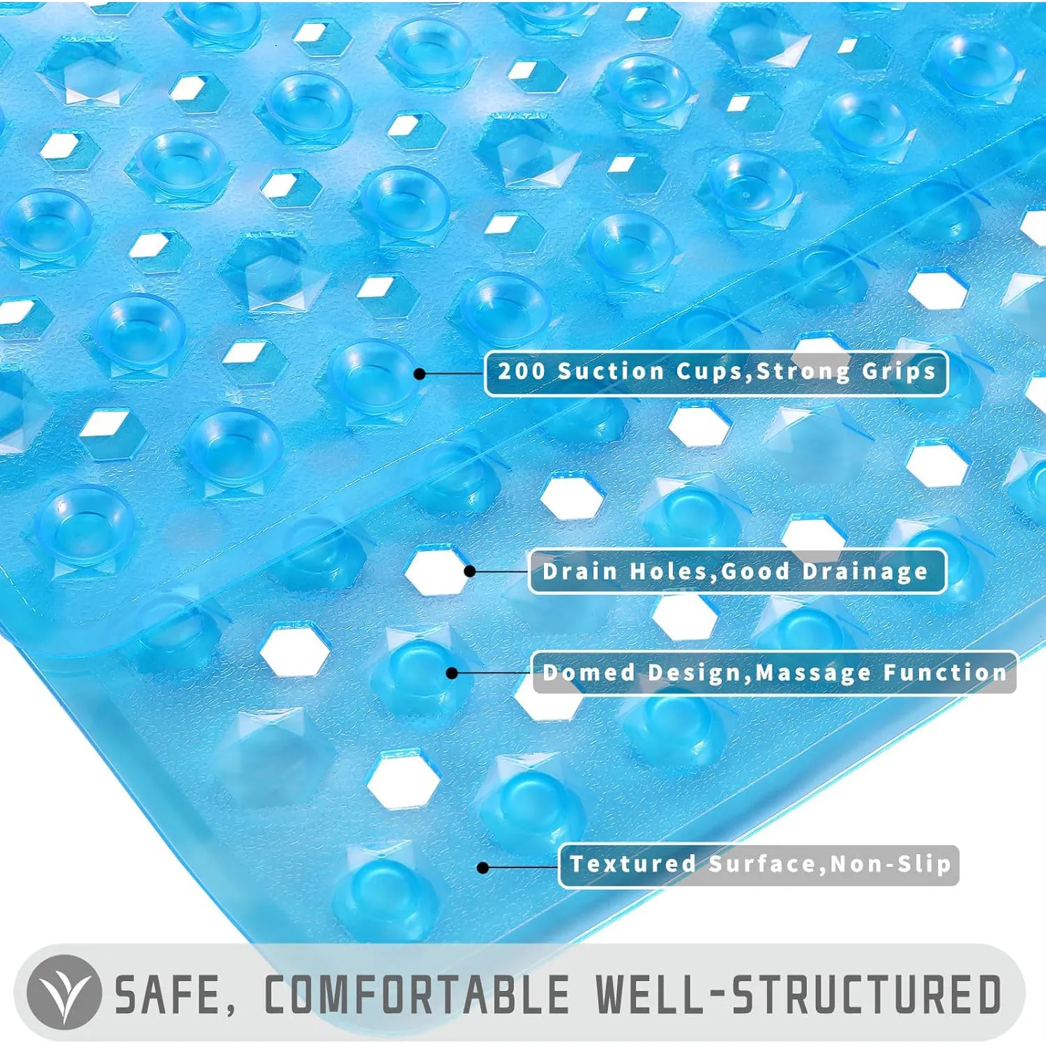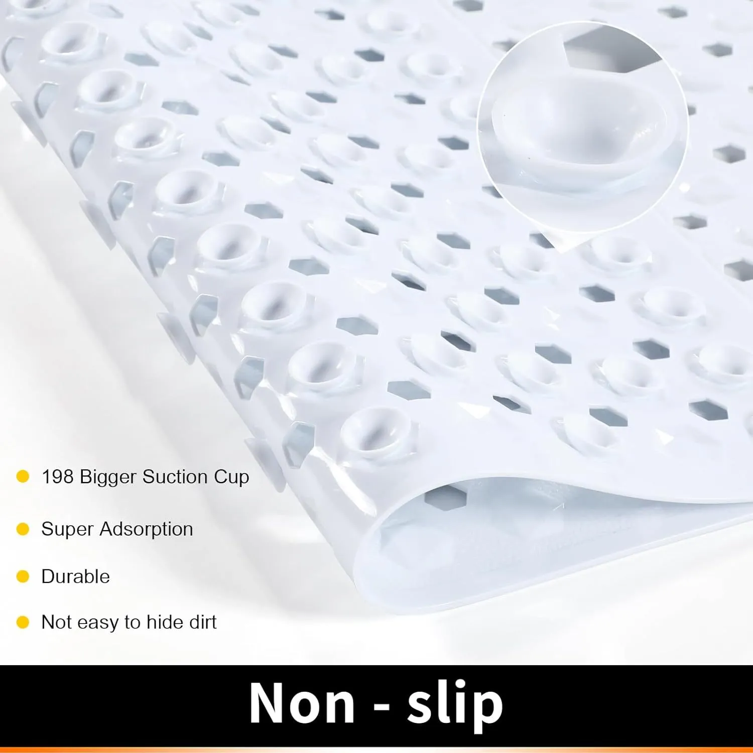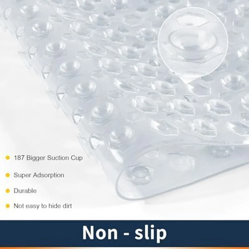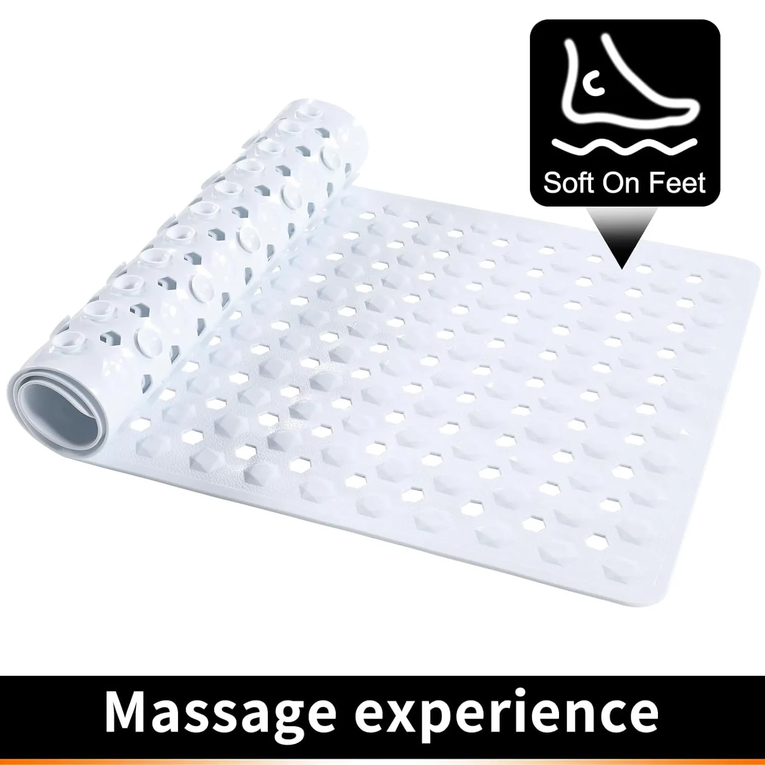 - OVERSIZED AND MACHINE WASHABLE: the shower floor mat is so easy to clean, simply machine wash and air dry; easily air dry the bath mat by hanging it over the side of the bath tub; generously sized bath mat for tub measures 35 by 16 inches, much larger and longer than other mats; providing excellent coverage for shower and bathtub floors