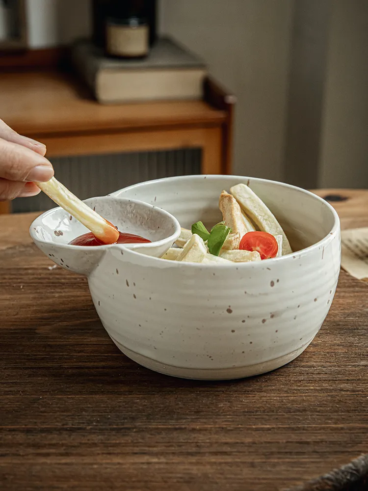 Self-contained Dipping Dish Snack French Fries Ceramic Snack Bowl