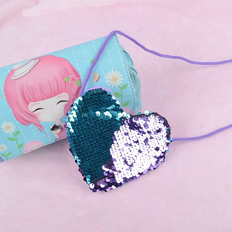Sequined lanyard bag love children's coin purs