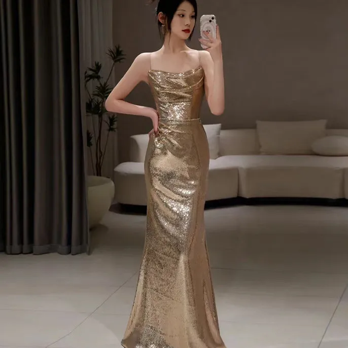 Sequined Suspender High-end Fishtail Skirt Light Luxury Elegant Host's Dress