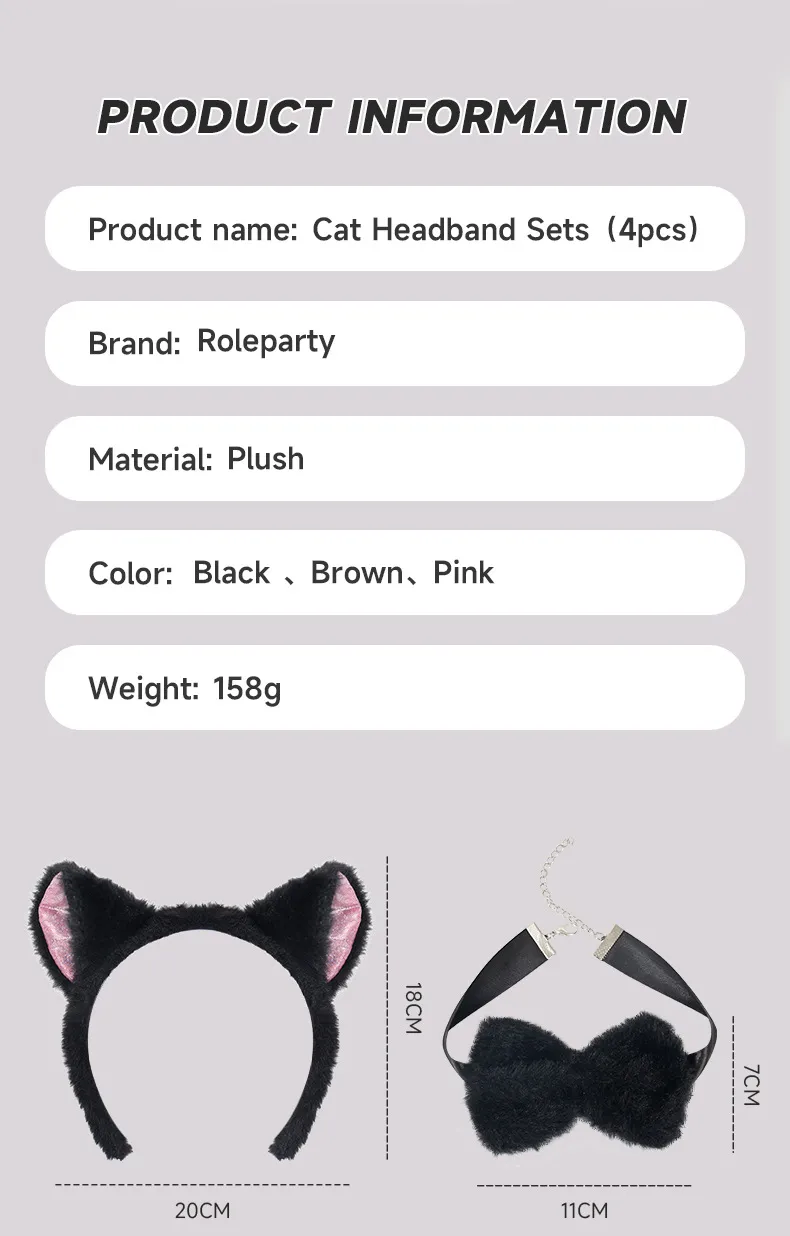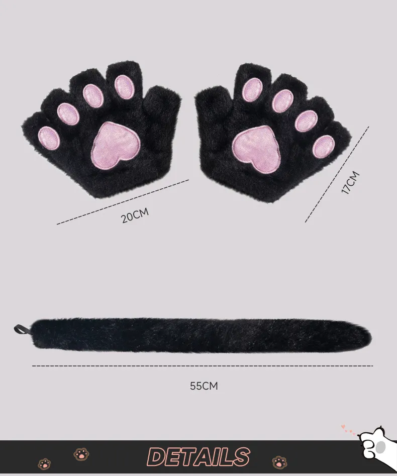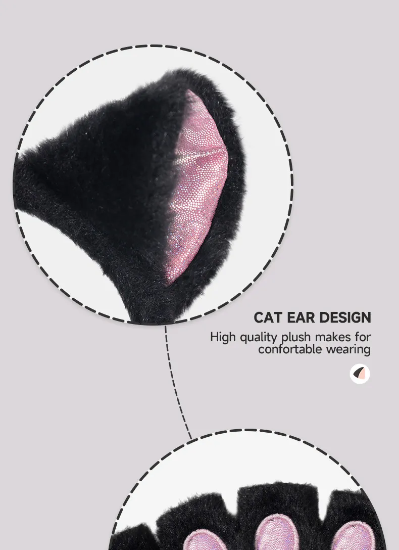 Set Cosplay Cat's Paw Gloves Cat Ear Headband