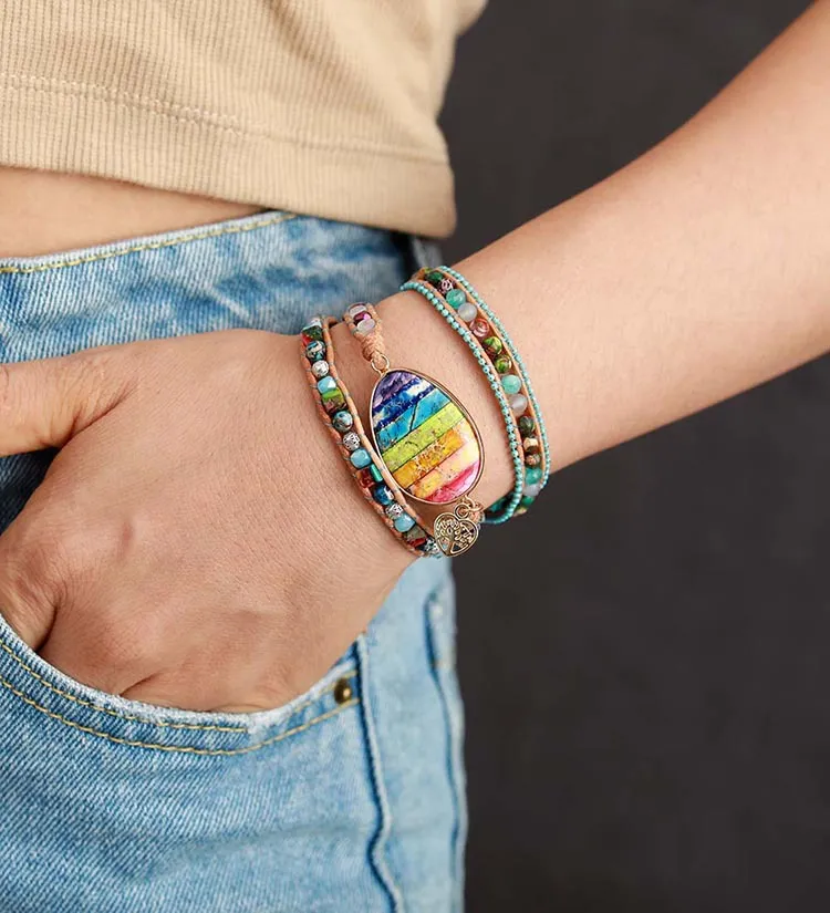 Seven Chakra Emperor Stone Leather Wrap Bracelet: A Bohemian-Inspired Friendship Bracelet for Healing and Connection