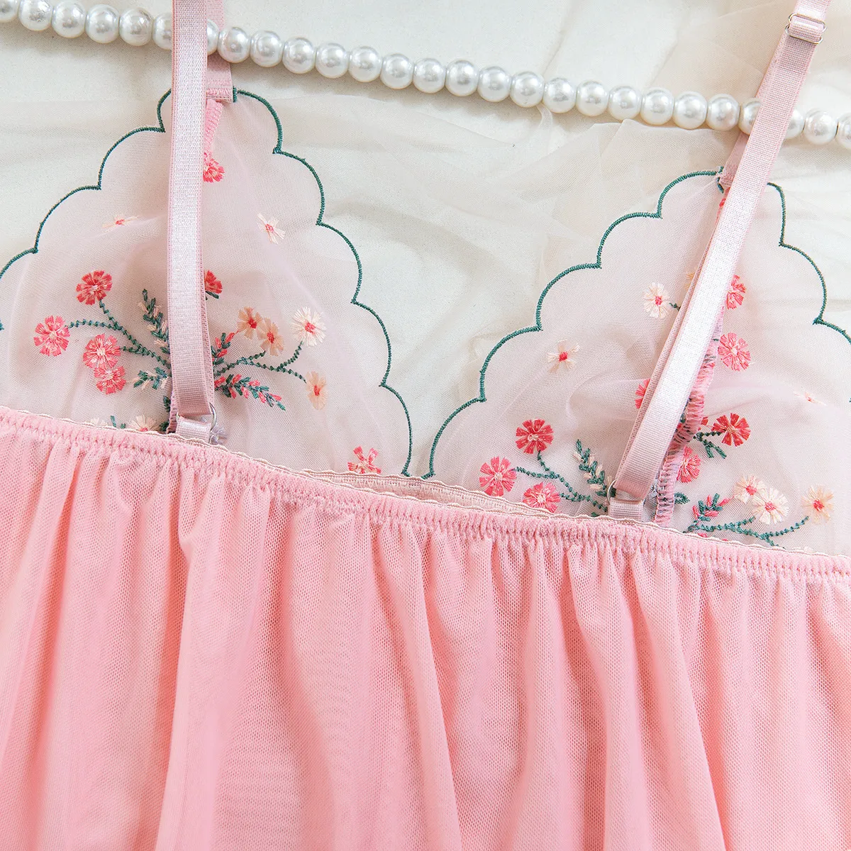 Sexy Sling Pajamas Exquisite Embroidered Mesh Transparent Lingerie