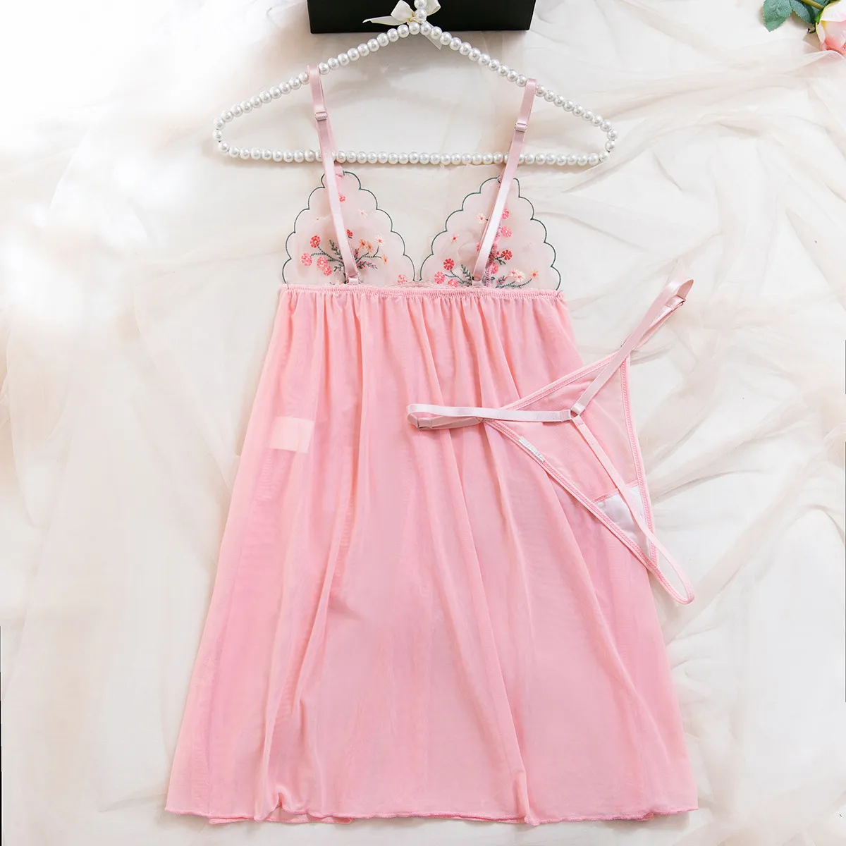 Sexy Sling Pajamas – Embroidered Mesh Transparent Lingerie