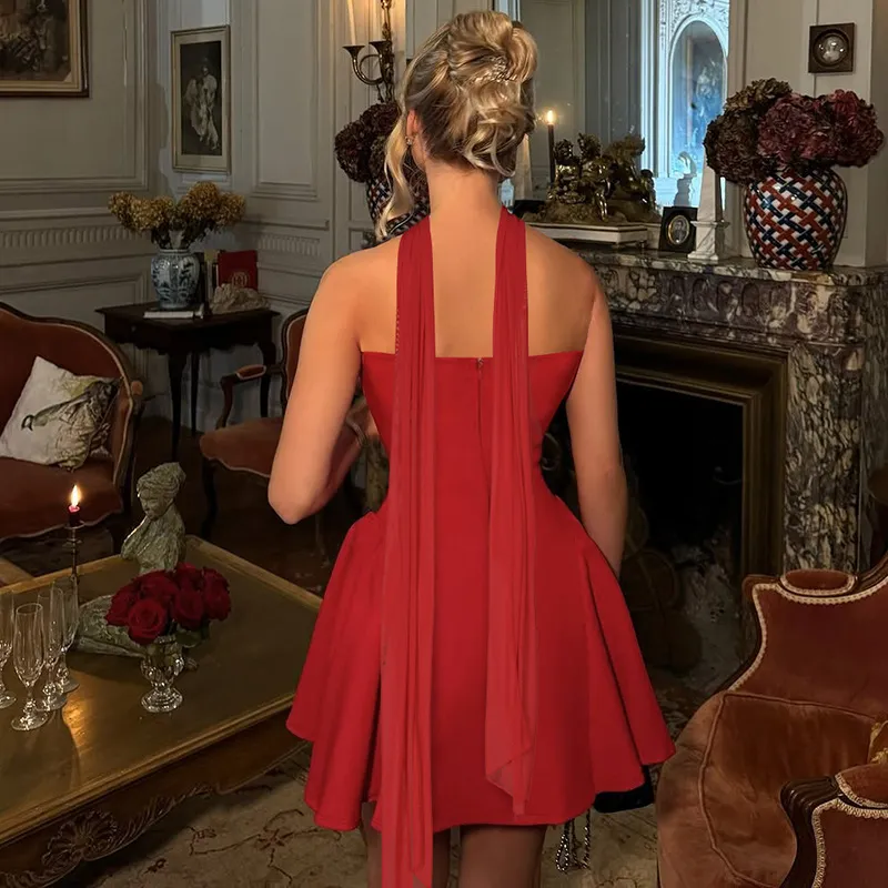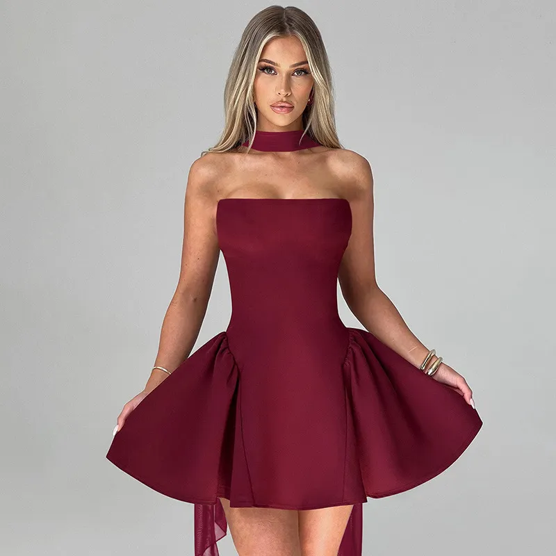 Sexy Tube Top Dress With Back Zipper Design Ins Fashion Short Dress For Party Clothing Women