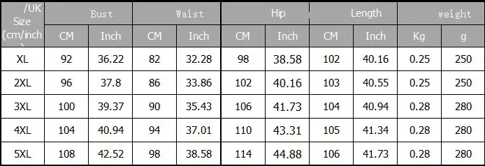 Size: XL, 2XL, 3XL, 4XL, 5XL