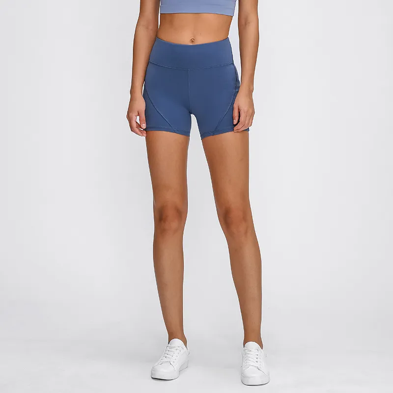 SHINBENE Anti-sweat Plain Sport Athletic Shorts Women High Waisted Soft Cotton Feel Fitness Yoga Shorts with Two Side Pocket
