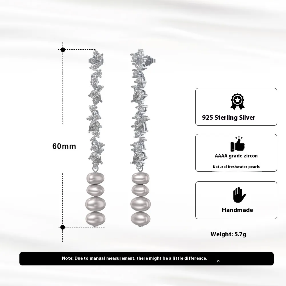 Shining Pearl Tassel Earrings Inlaid Zirconium Pearl