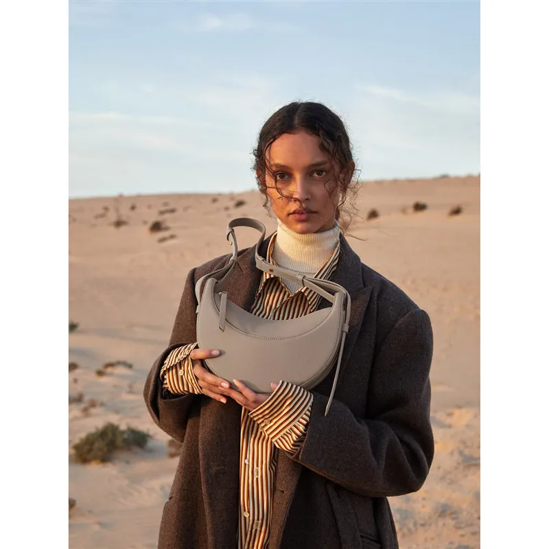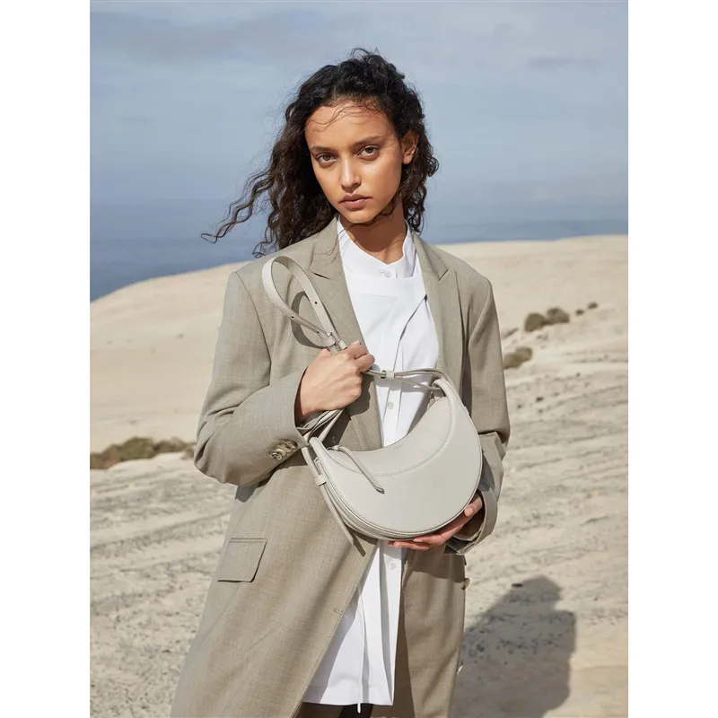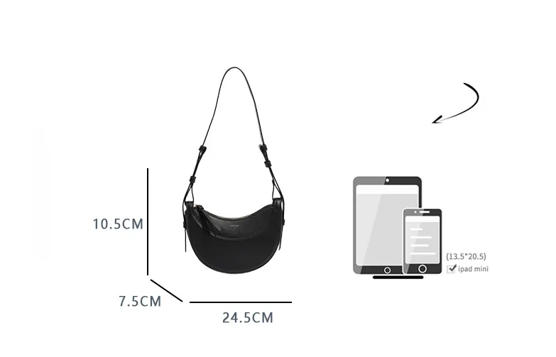 Shoulder Female Litchi Pattern Crescent Genuine Leather Bag