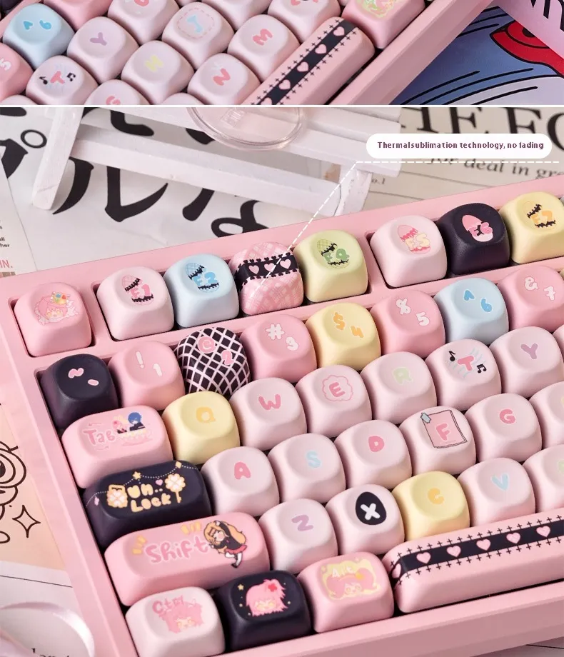 Enhance your mechanical keyboard with the Shugo Chara MOA Highly Personalized Key Cap Set. Crafted from premium PBT material, these keycaps are durable, wear-resistant, and long-lasting. The five-sided sublimation printing ensures vivid, precise, and fade-resistant legends, giving your keyboard a truly personalized look.
