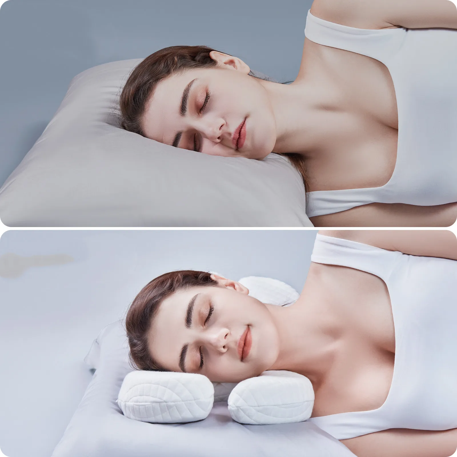 The specially contoured shape cradles your head and neck while preventing your face from being pressed against the pillow, reducing sleep wrinkles.