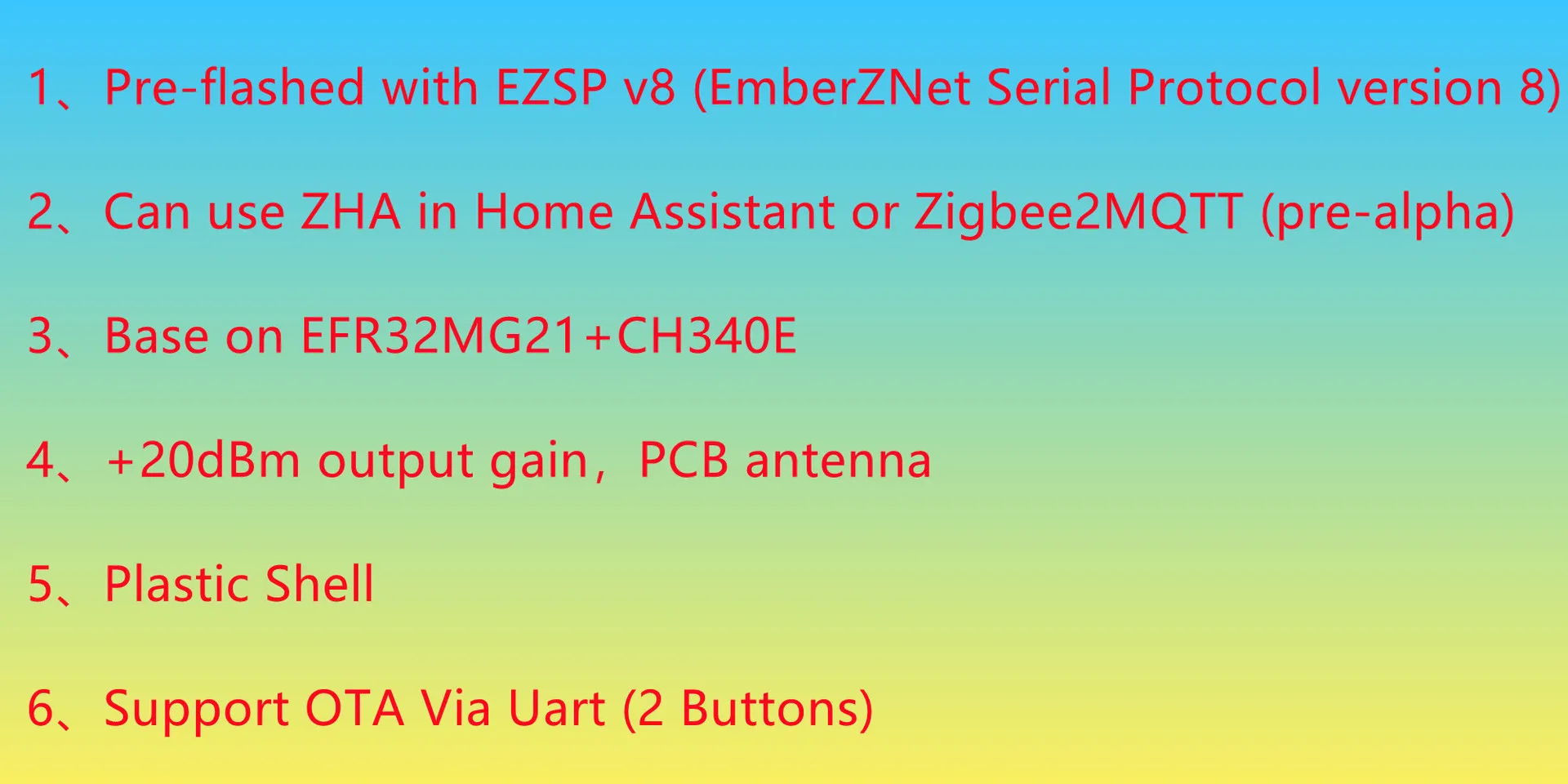 1、Pre-flashed with EZSP v8 (EmberZNet Serial Protocol version 8)