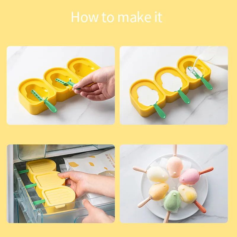 3 grids design, you can make 3 popsicles at one time.