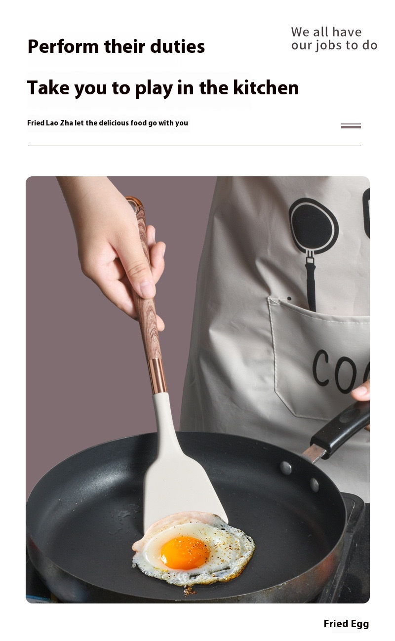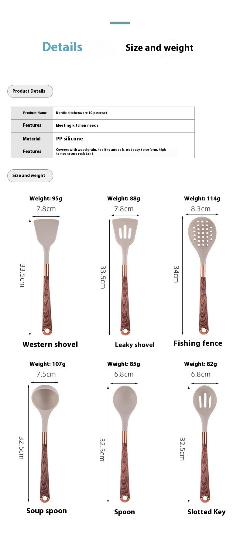 Silicone Kitchenware Set 11-piece Gold-plated Wood Grain Handle Non-stick Pan