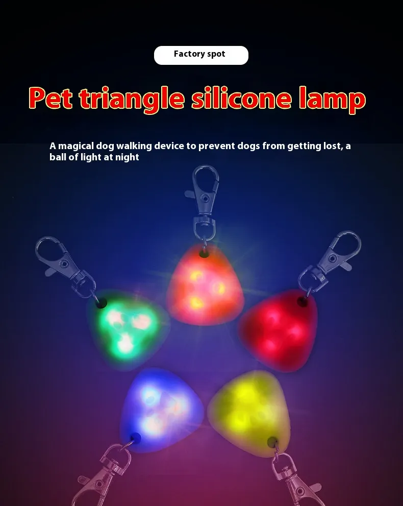 The Silicone Triangle Pendant Light-emitting Pendant Pet Supplies Ornaments is a must-have for pet owners who value both style and safety. Whether you're looking to increase your pet’s visibility at night or simply add a fun and stylish accessory to their outfit, this pendant does it all. Its LED light feature ensures your pet is visible during low-light conditions, making it perfect for evening walks, outdoor adventures, or nighttime play.