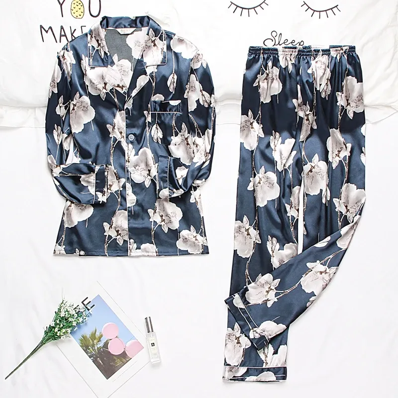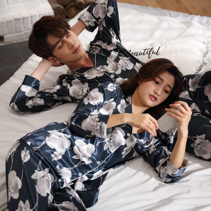 These long-sleeved pajamas are designed with couples in mind, offering matching styles for both men and women. The casual design features a sleek, modern cut that combines both comfort and fashion. The soft texture of the ice silk fabric provides a cool, smooth feel against the skin, making them ideal for those warmer months when you want to feel relaxed and pampered.