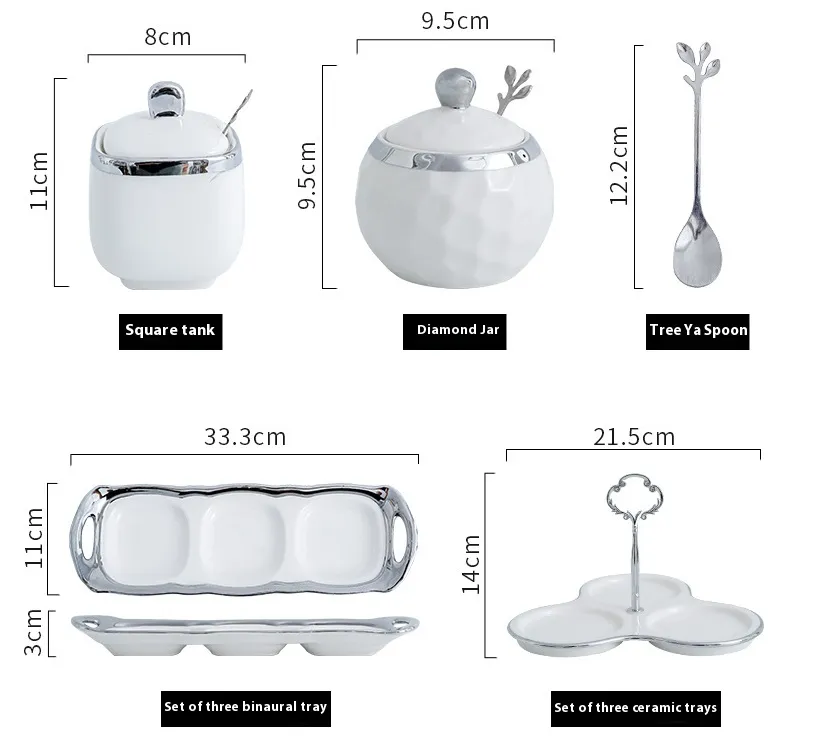 Silver Edged Ceramic Seasoning Jar Box Seasoning Bottle