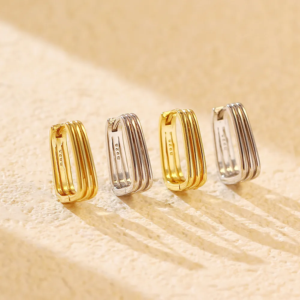 These silver geometric earrings are incredibly versatile, making them perfect for any occasion. Their modern, sleek design can be paired with both casual and formal outfits. Whether you're dressing up for a night out or adding a subtle touch of elegance to a work outfit, these earrings are a chic and effortless addition to your accessory collection. Their timeless design ensures that they can be worn every day, transitioning smoothly from day to night.