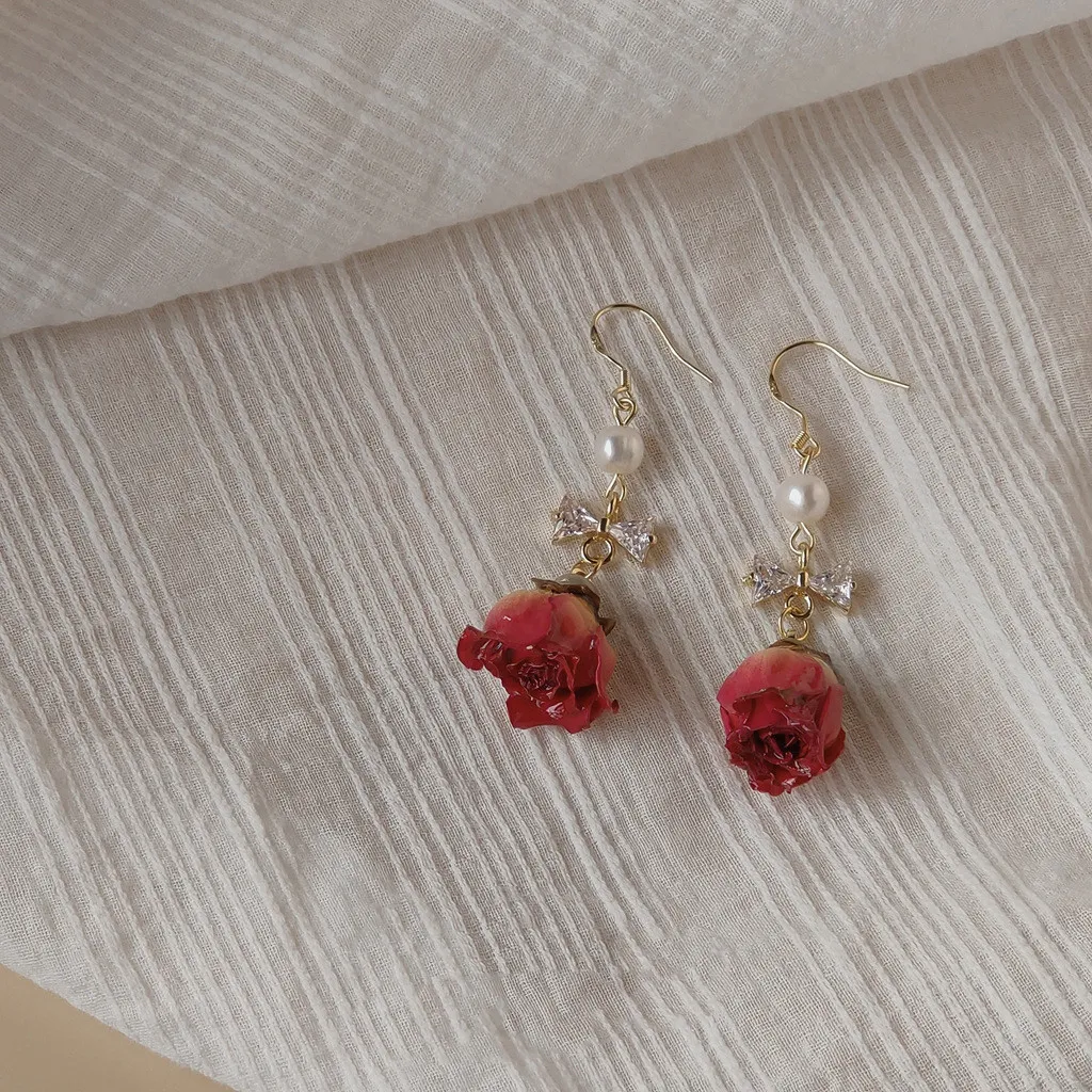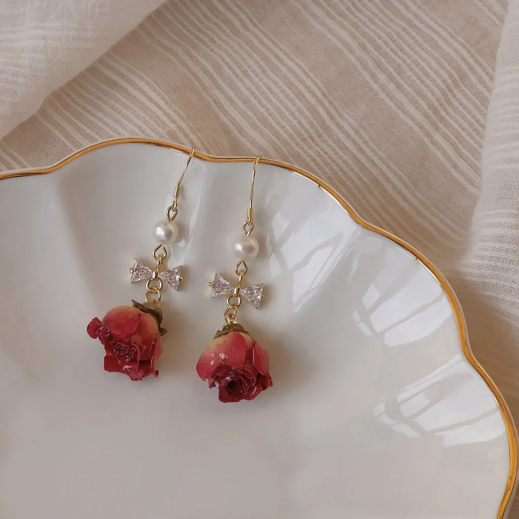 Silver Needle Vintage Hong Kong Air-dried Rose Earrings