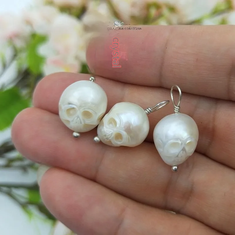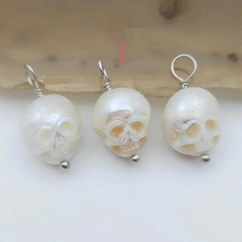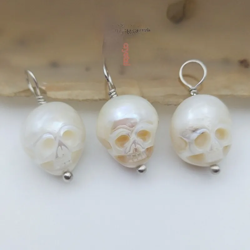Silver Plated Vintage Freshwater Skull Pendant For Women