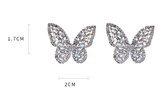 Silver Stud Rhinestone-encrusted Zircon Butterfly Studs
