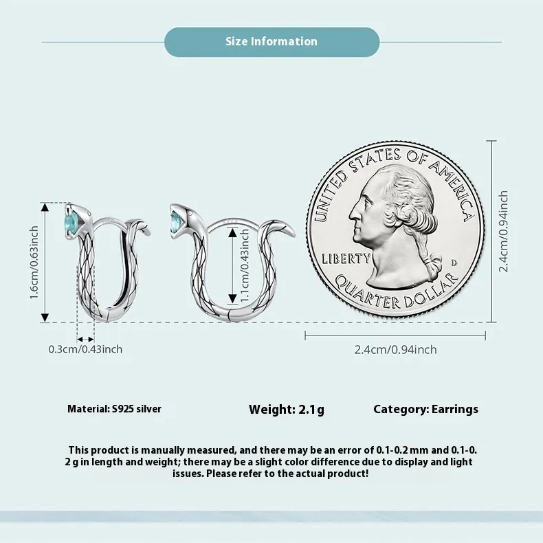 Silver Ziyun Original Animal Year Snake Ear Clip Unisex