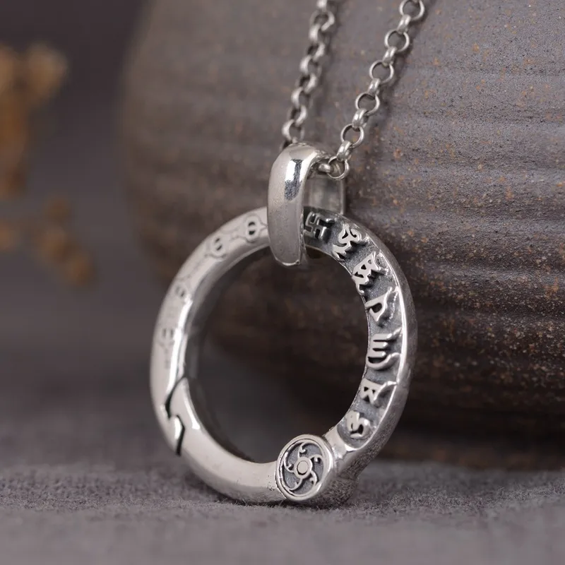 Simple Design Silver Buckle Accessory Buckle Six-character Mantra Keychain