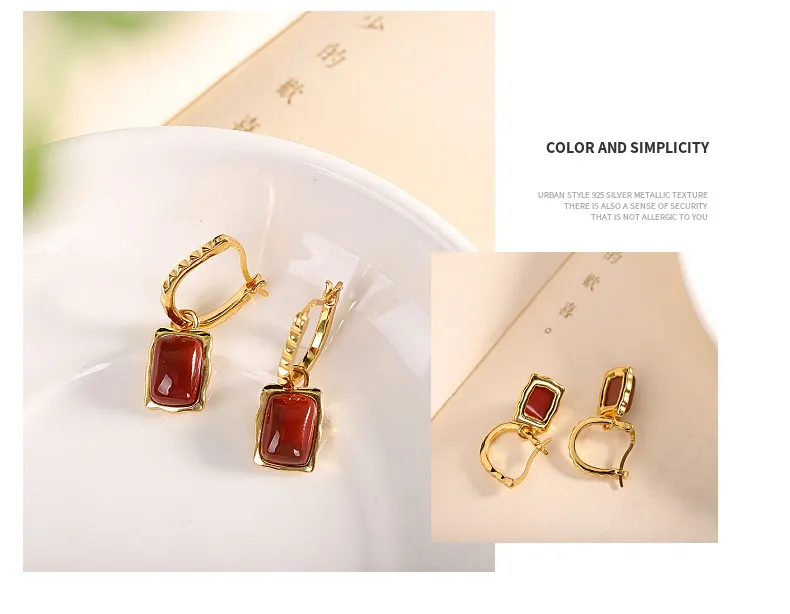 Why Choose the Simple Fashion Gold Plated Southern Red Agate Women's Earrings?