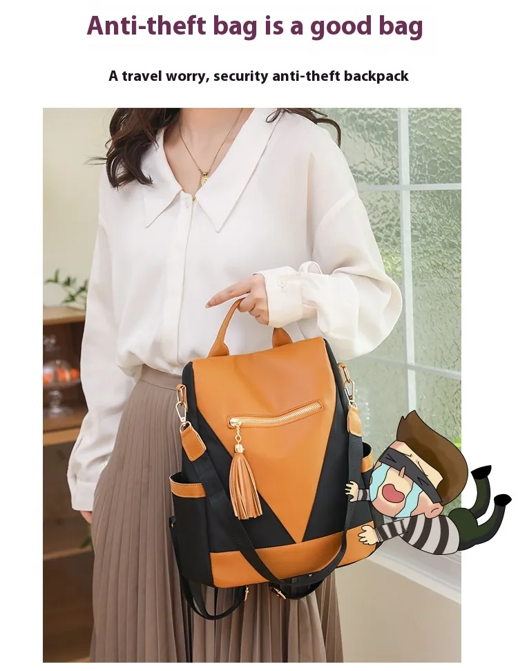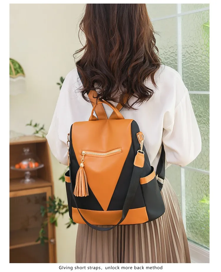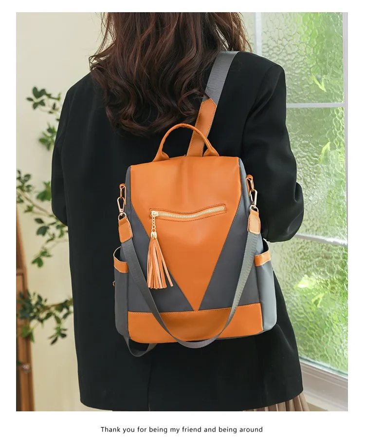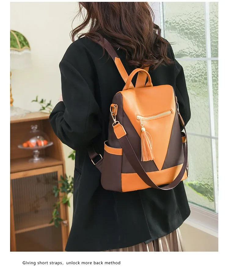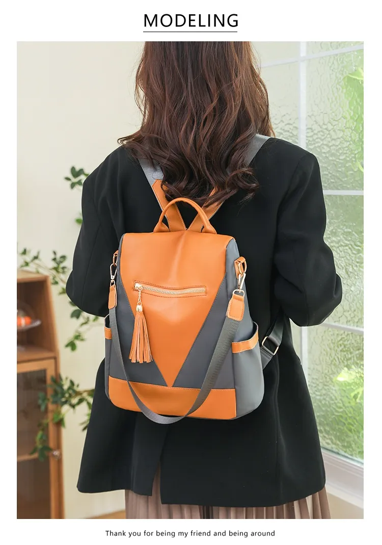 Simple Fashion Large Capacity Color Contrast Patchwork Casual Backpack