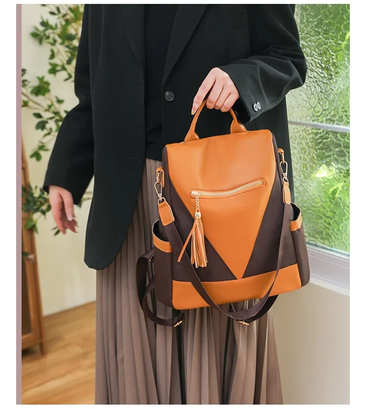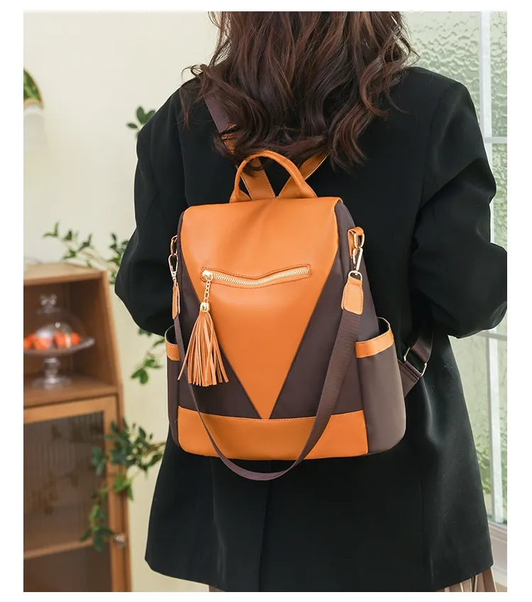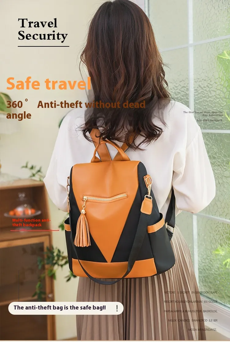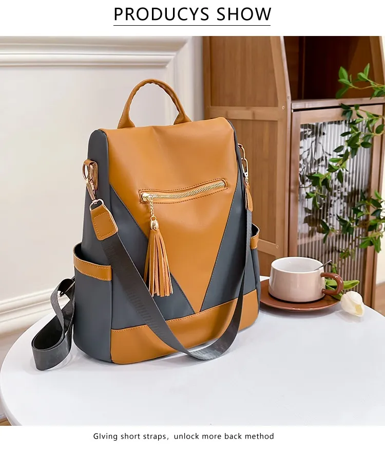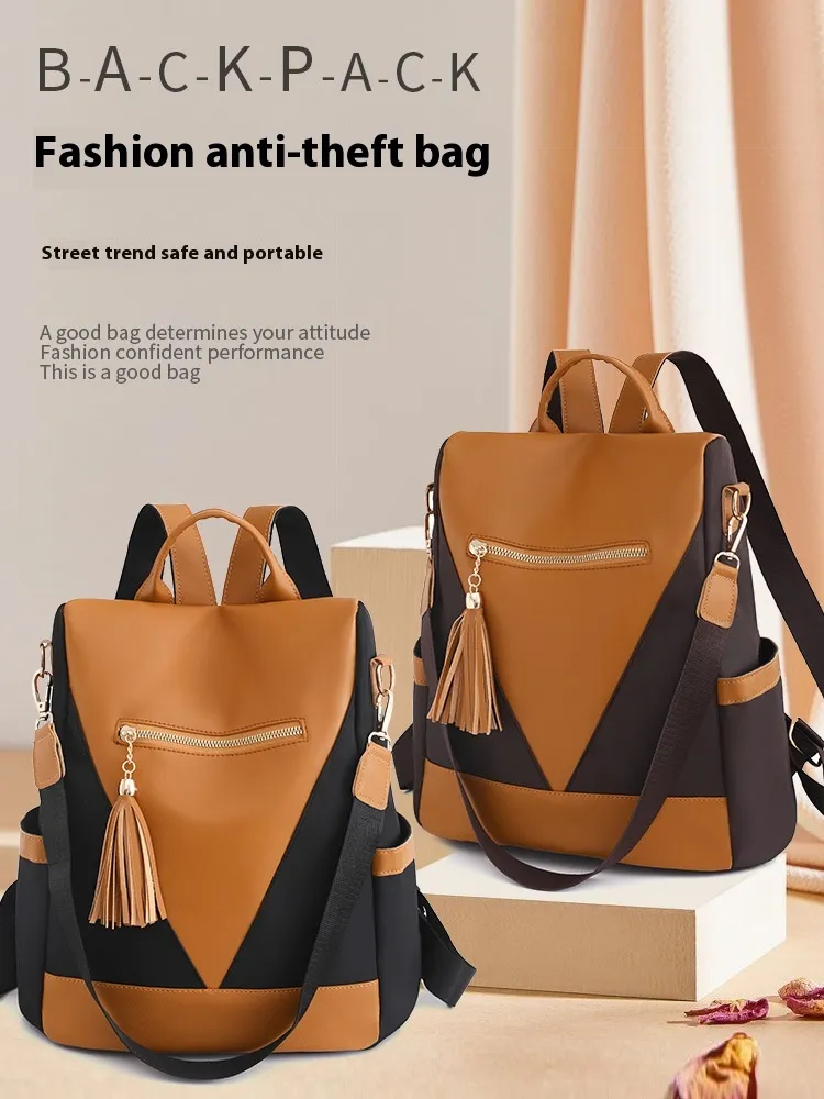 Simple Fashion Large Capacity Color Contrast Patchwork Casual Backpack