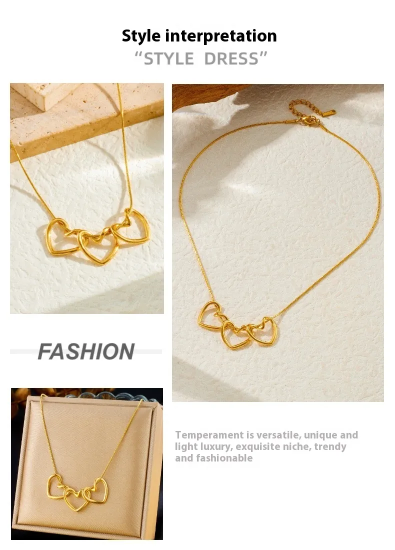 Simple Gold-plated Love Connection Pendant Chain Stainless Steel Necklace