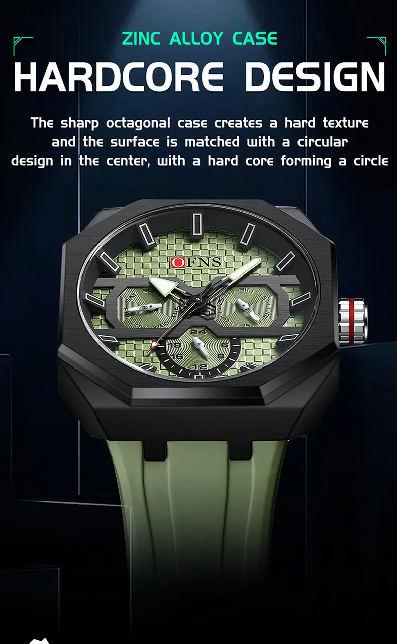 - Three Sub-Dials: Displaying additional functions like date, day, and time tracking for a more complete timekeeping experience.
