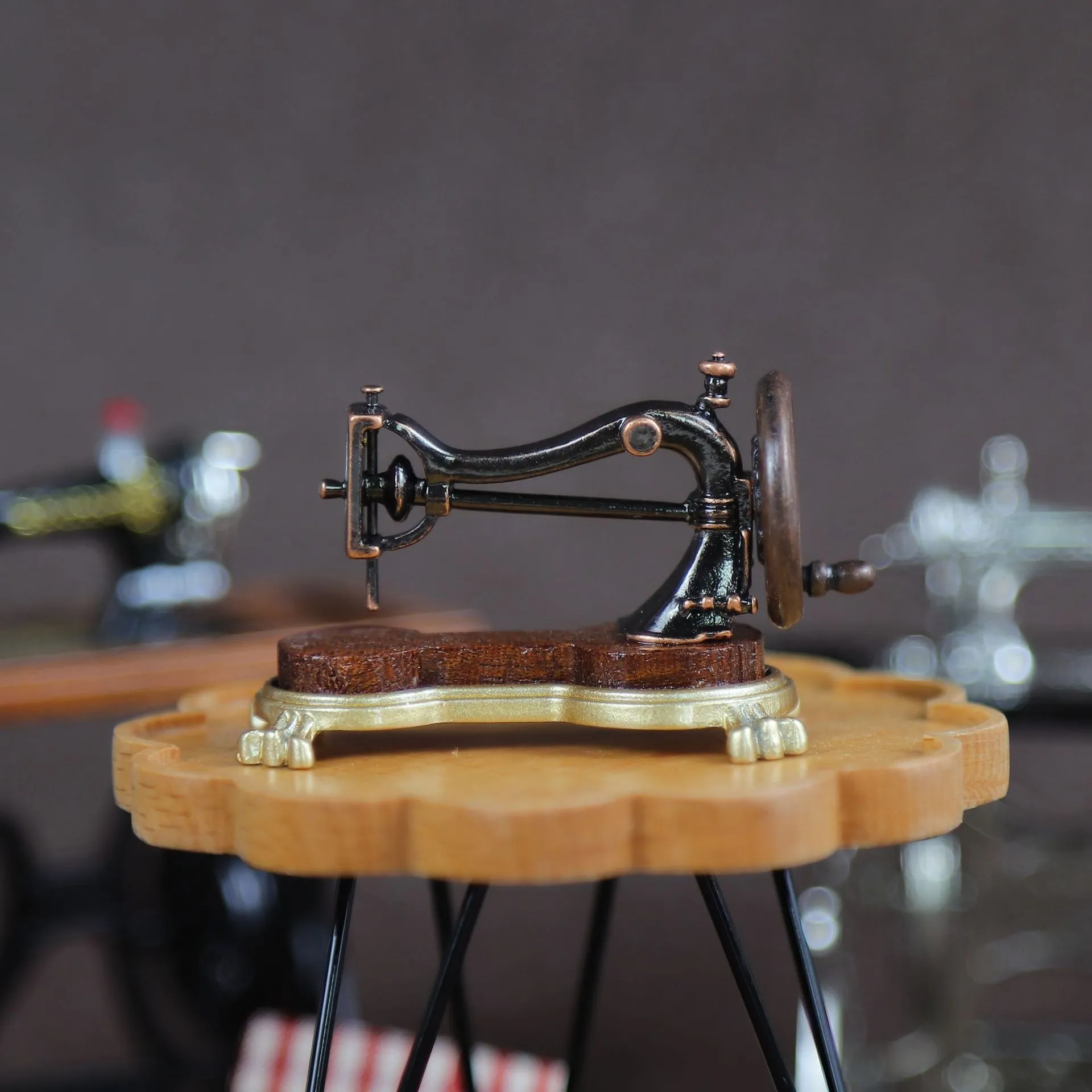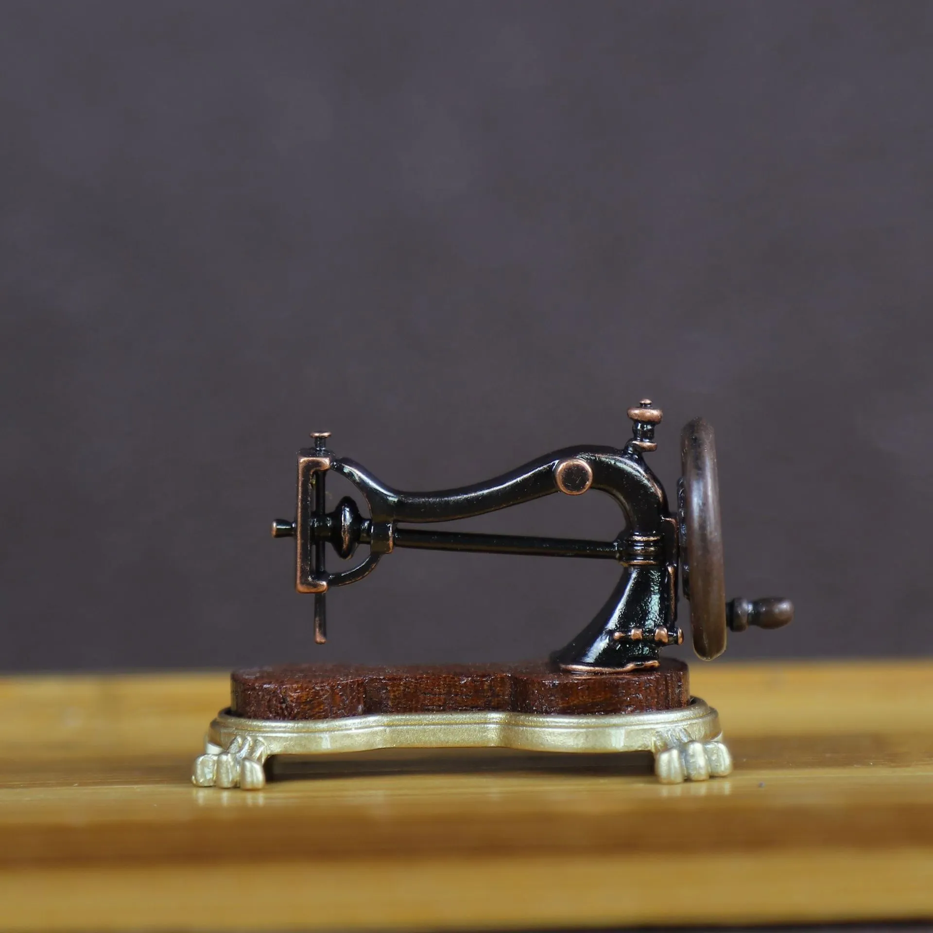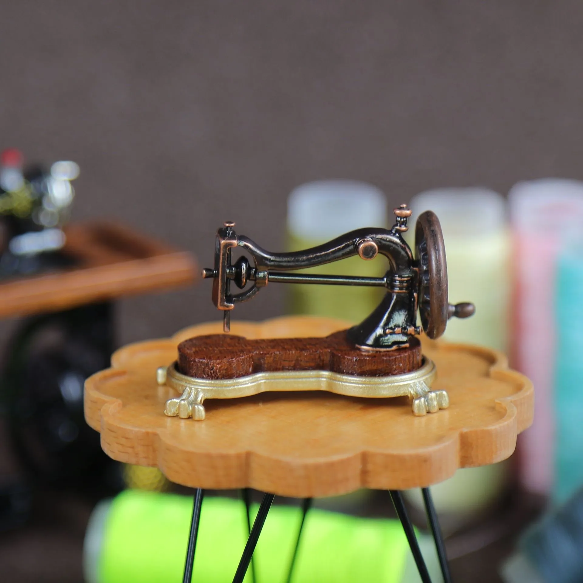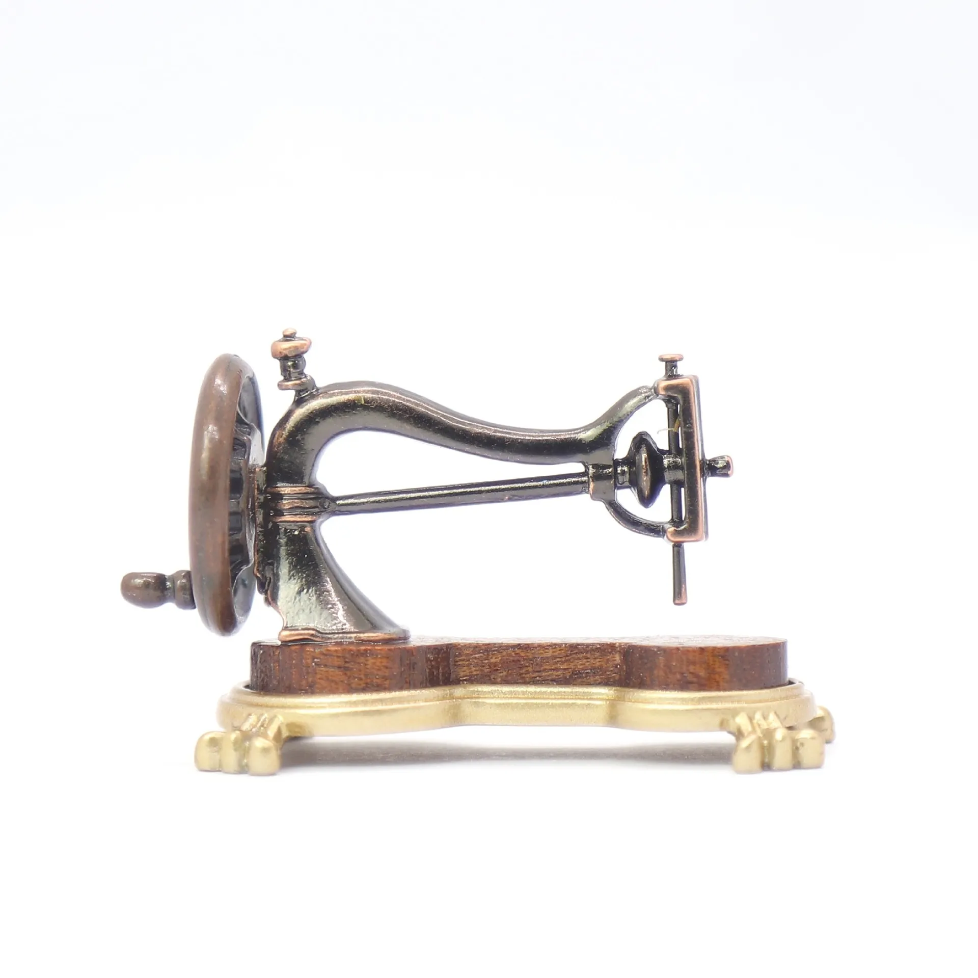 details, this miniature sewing machine perfectly replicates a classic hand-crank model, making it an ideal accessory for dollhouses,