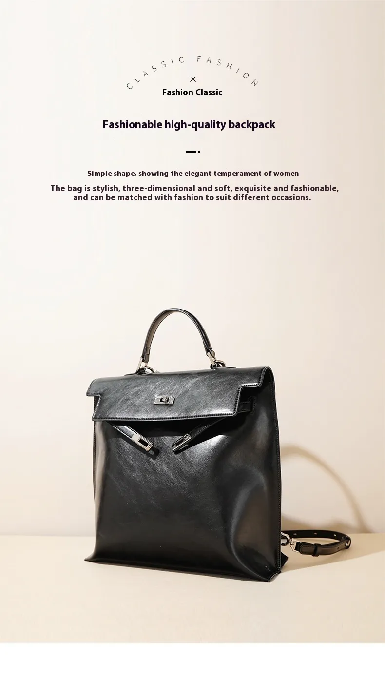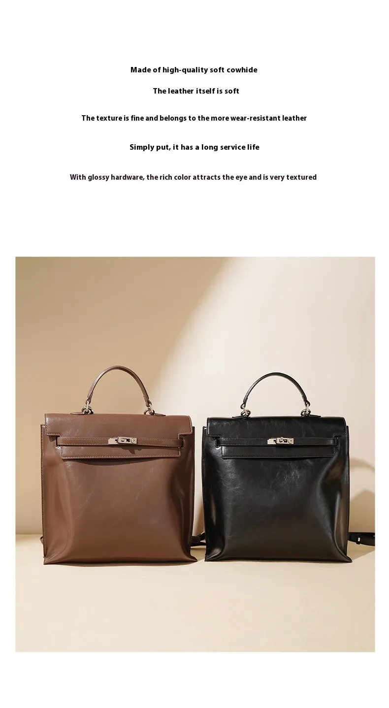 Single Double-shoulder All-matching Large Capacity Premium Leather Handbag
