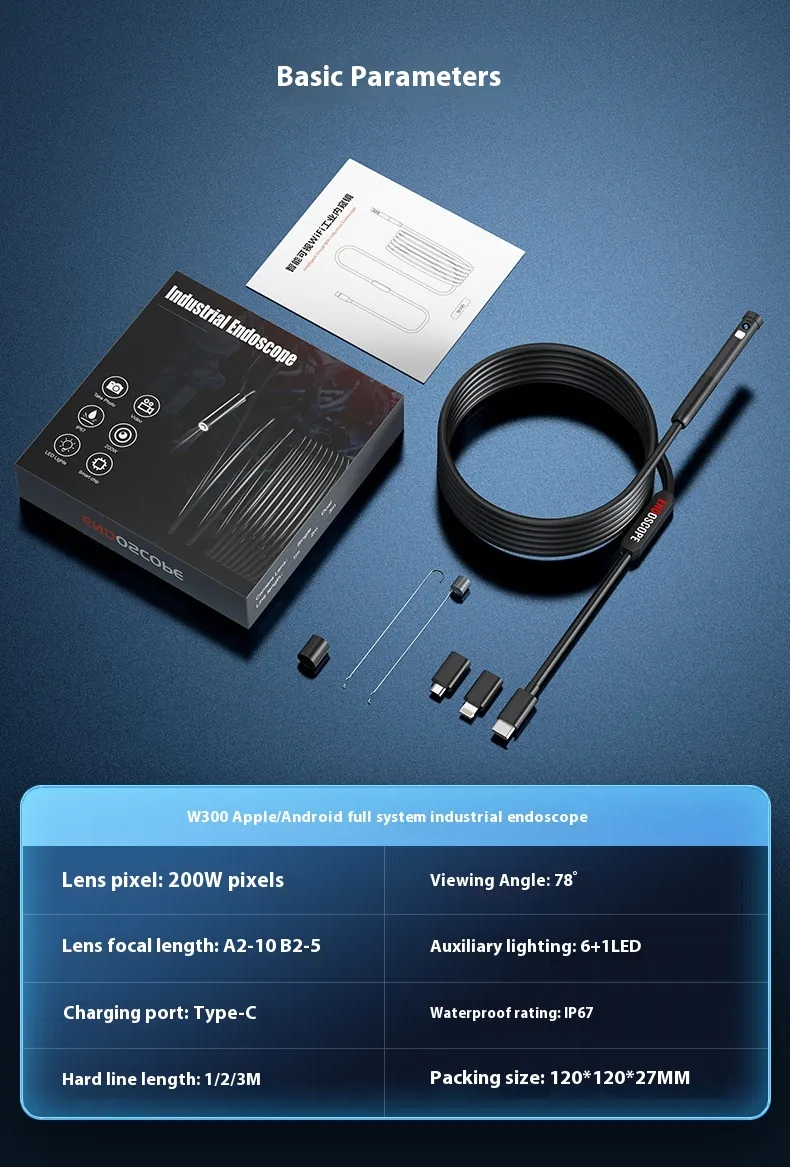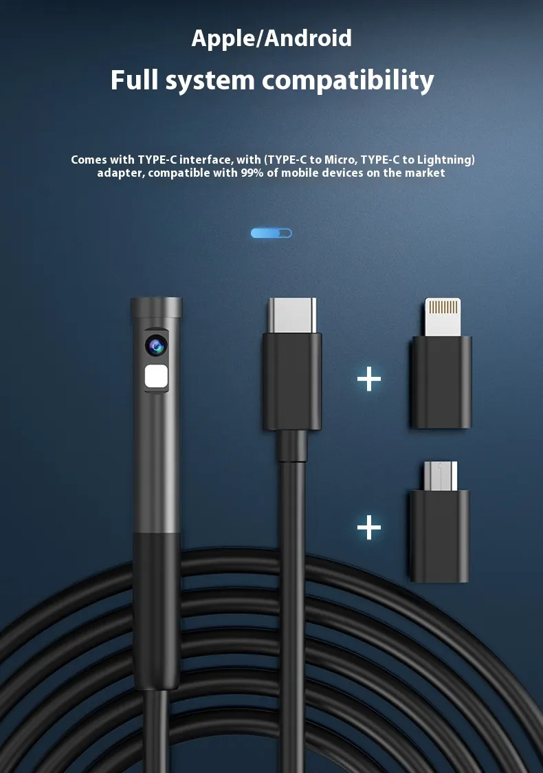 This three-in-one device is perfect for professionals, DIY enthusiasts, and home users alike. Its flexible cable and compact design enable easy maneuvering through narrow spaces, while the HD lenses ensure clear, detailed images and video recording. Compatible with most Type-C smartphones, it offers quick setup and real-time viewing.